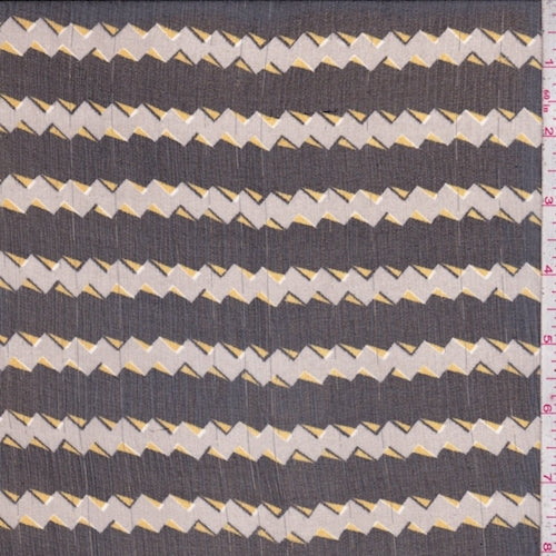 Grey/Black Zig Zag Stripe Crinkled Silk Chiffon Fabric