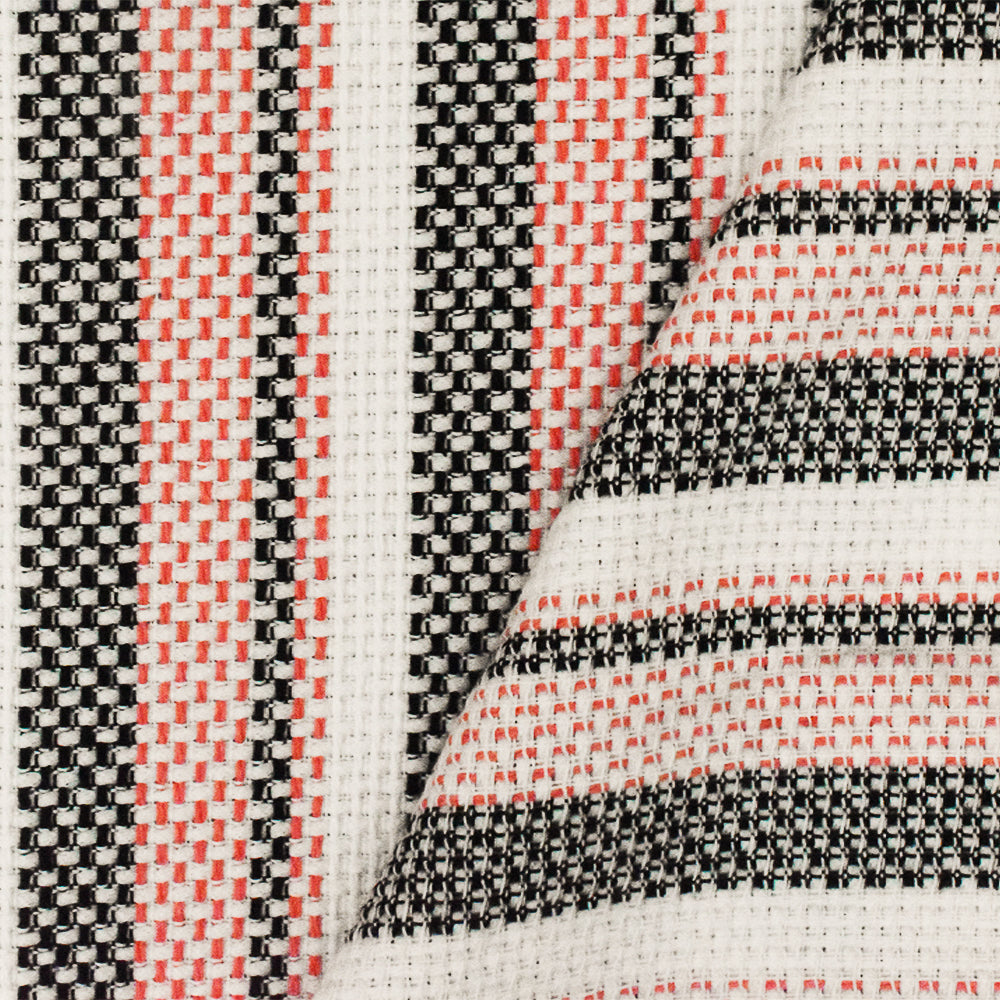 Bright Orange-Black-White Stripe Poly-Linen Dobby Woven Fabric