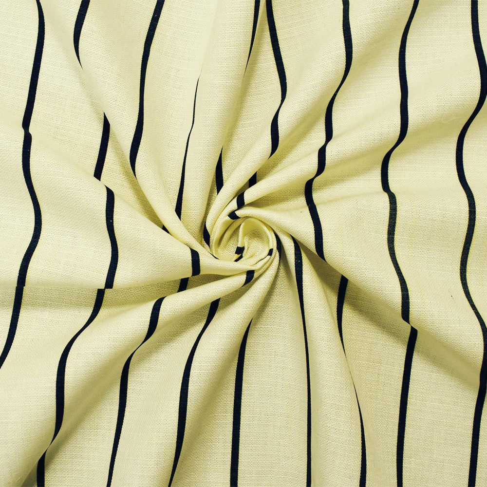 White-Navy Cotton Vertical Stripe Printed Slub Woven Fabric