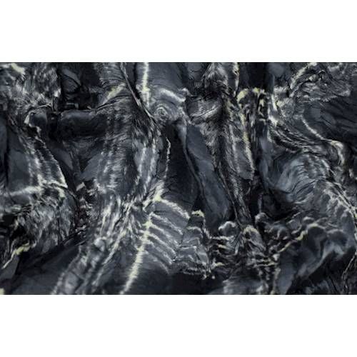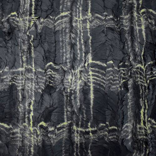 Black/Beige Pressed Abstract Plaid Faux Fur Knit Fabric