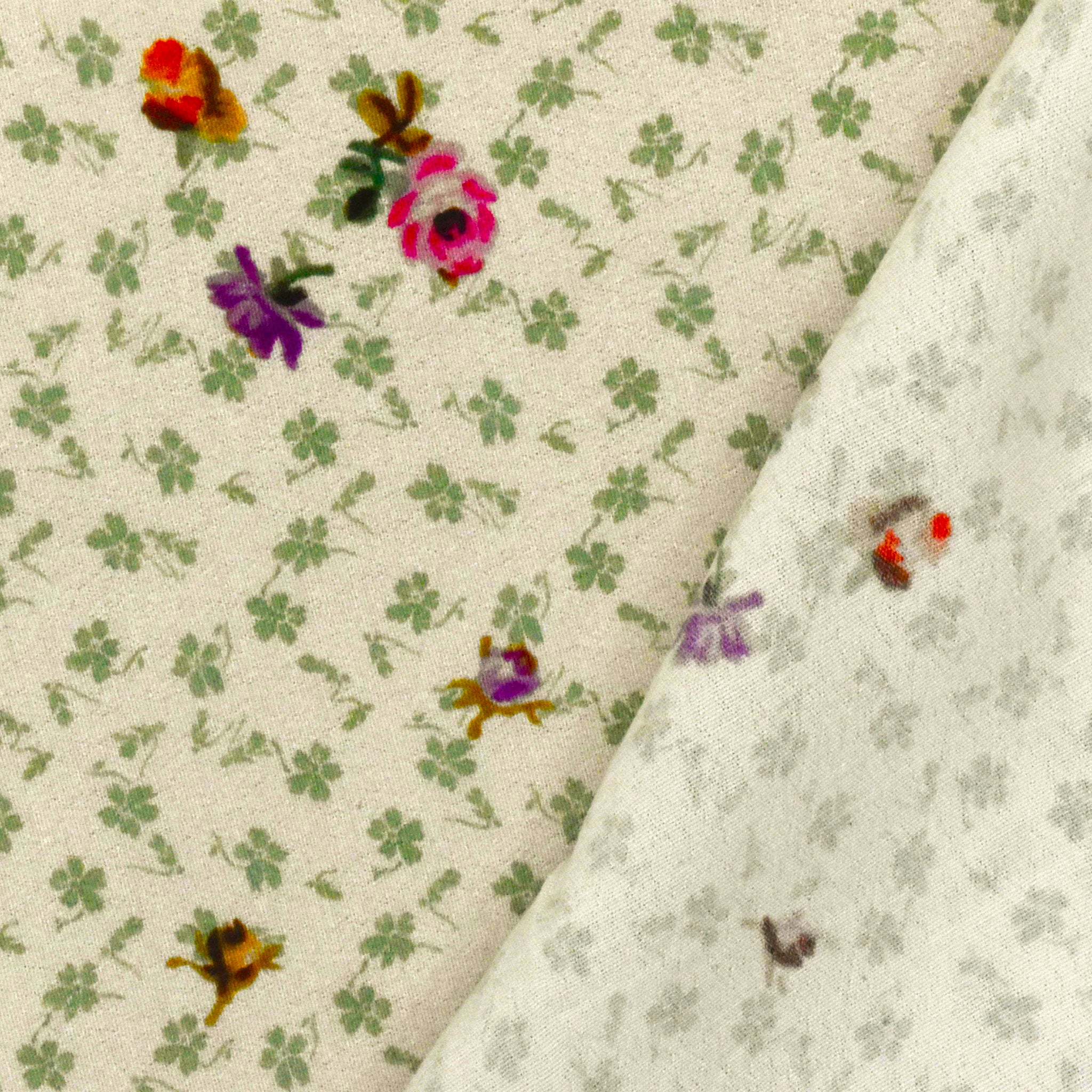 Ivory-Multi Flax Blend Famous Designer Floral Printed Slub Woven Fabric