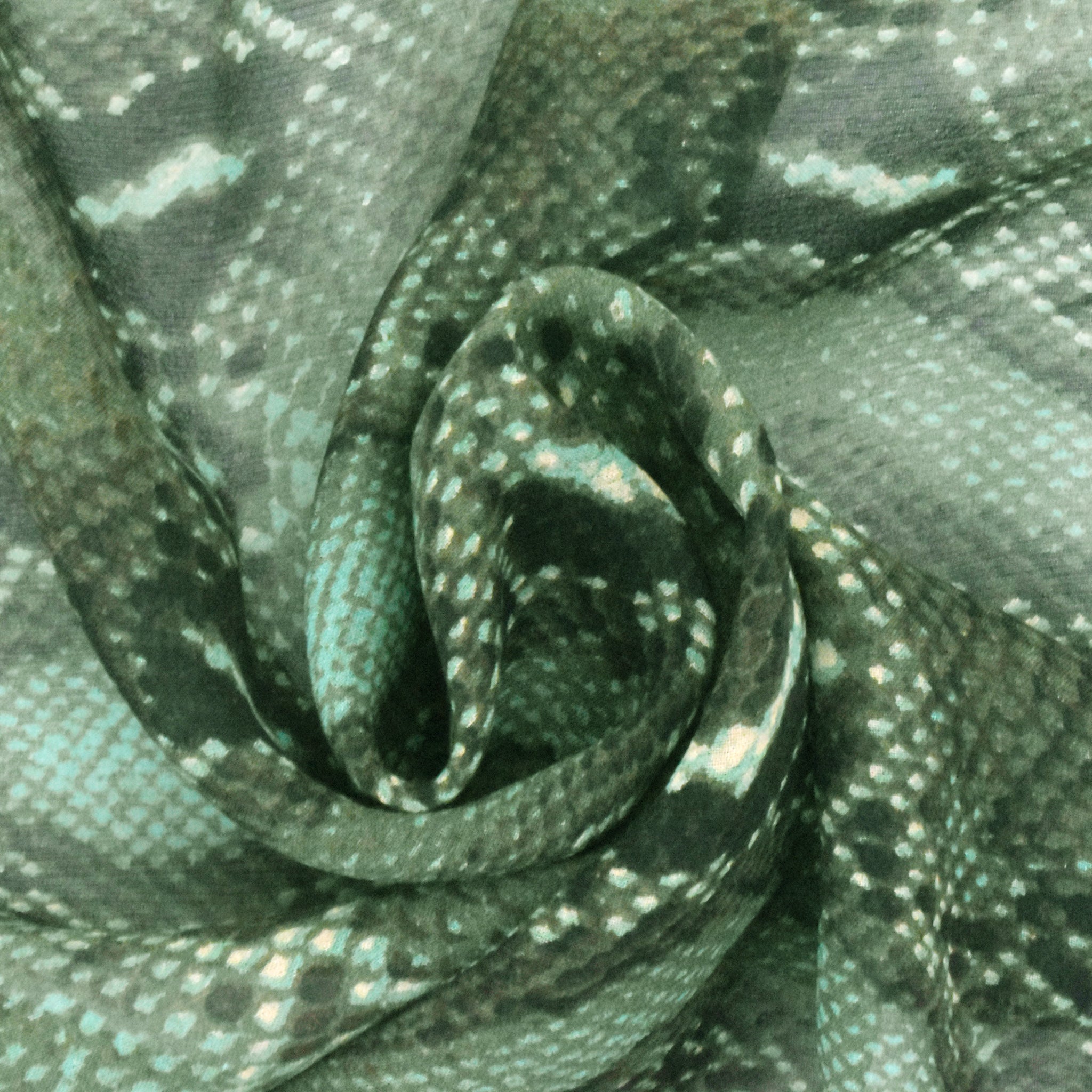 Opaline Green-Brown-Multi Reptile Printed Silk Chiffon Woven Fabric