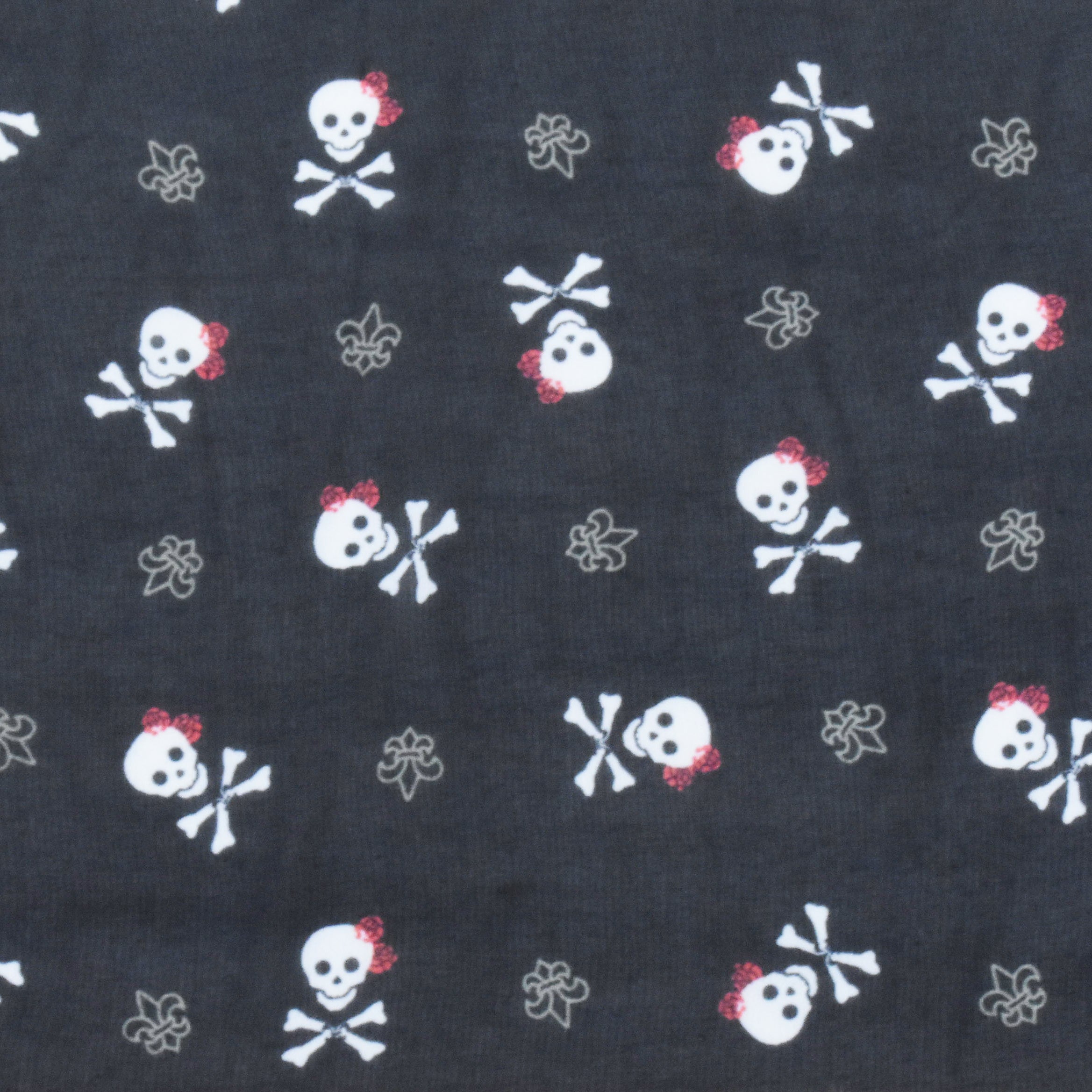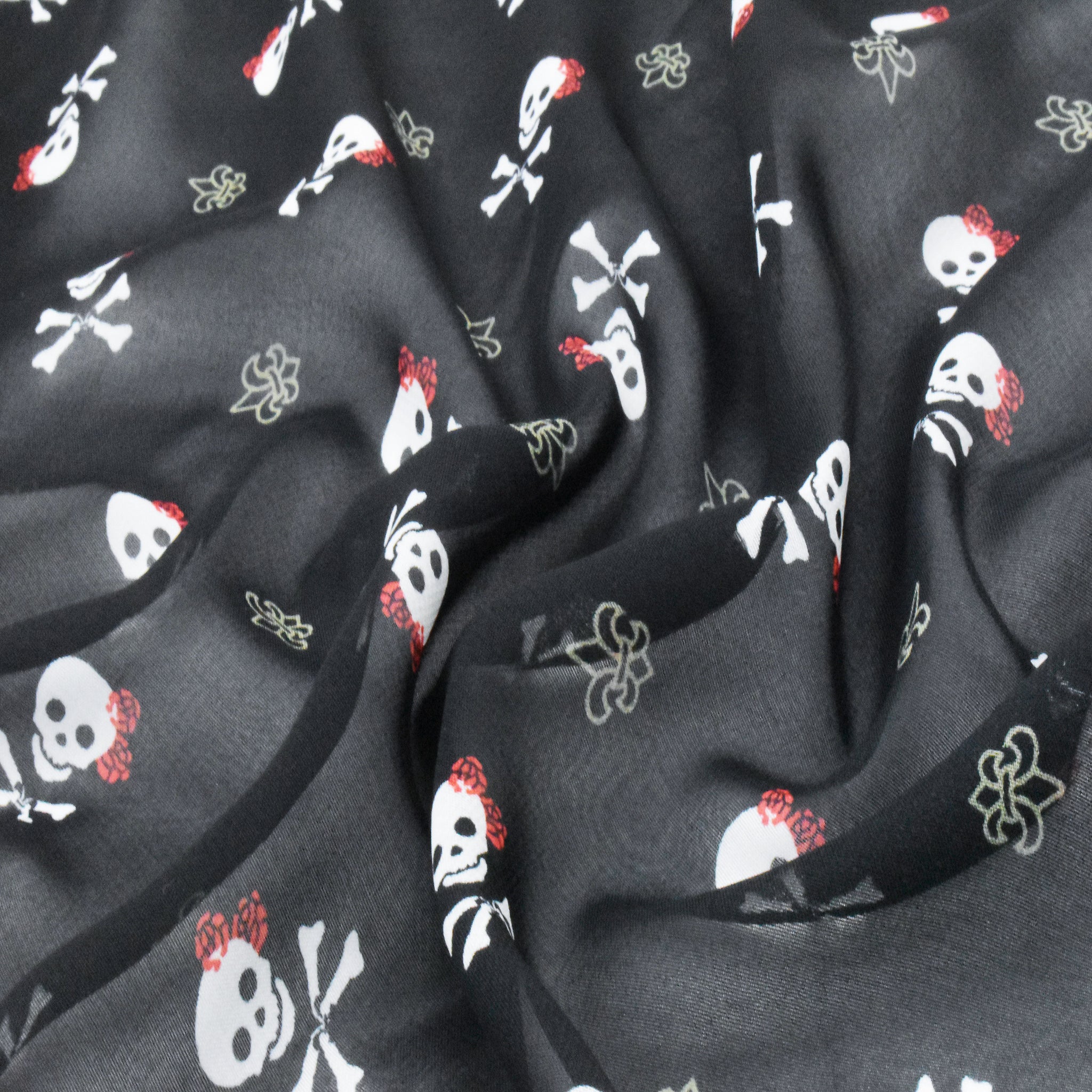Night Black-White-Multi Skull Printed Polyester Chiffon Woven Fabric