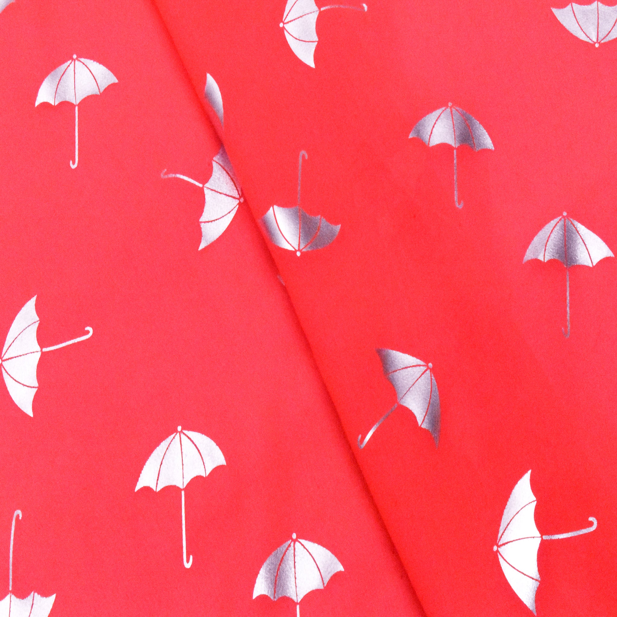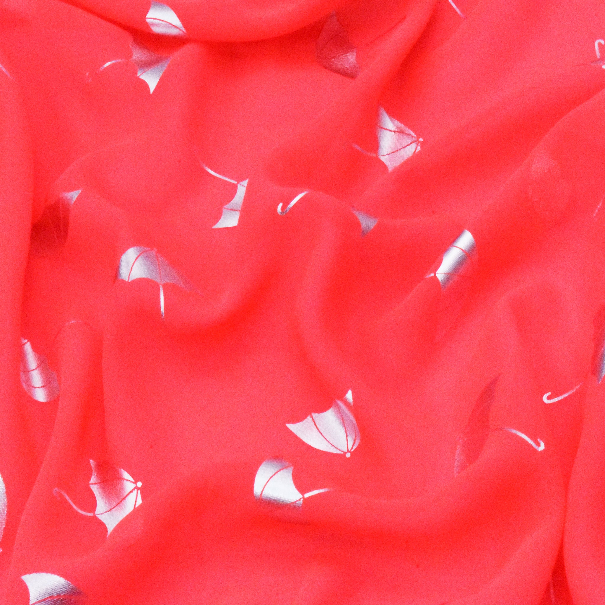 Caral Red-Silver Umbrella Foil Printed Polyester Chiffon Woven Fabric