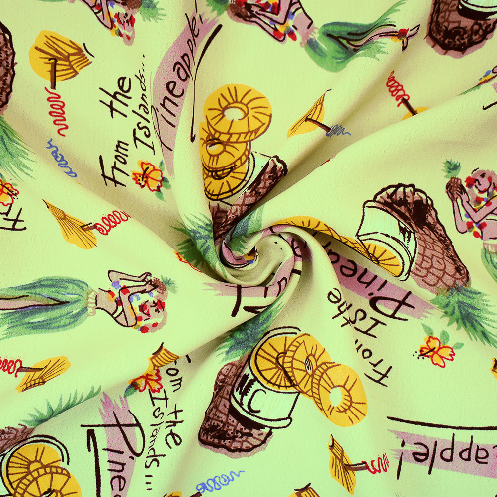 Light Green-Pink-Multi Hawaiian Theme Printed Rayon Crepe Faille Woven Fabric