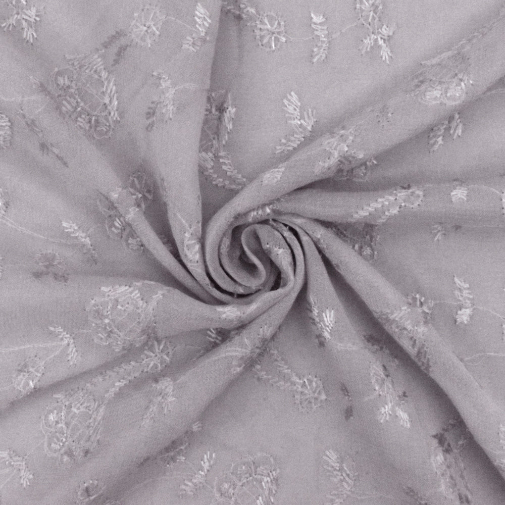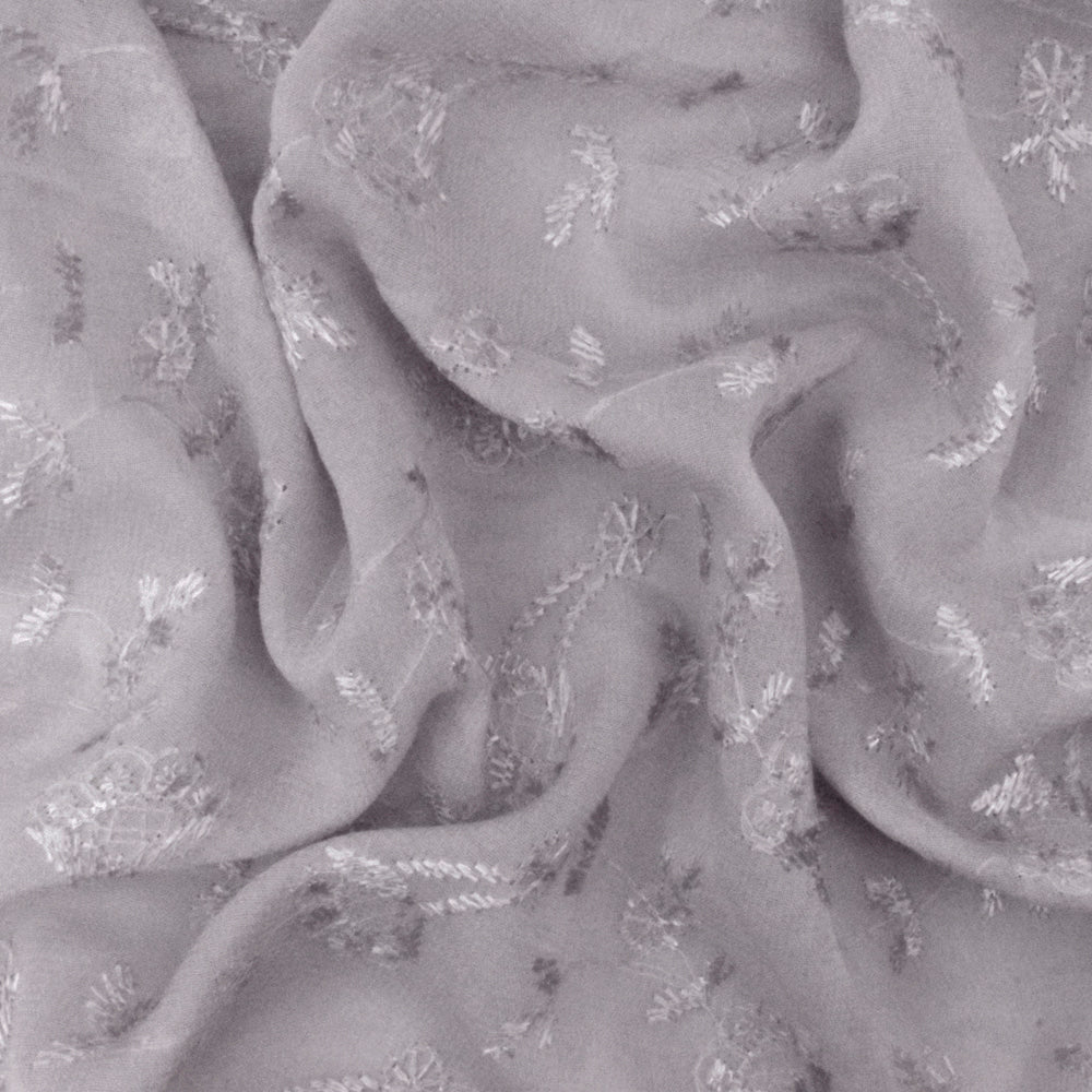 Vintage Purple Floral Embroidered Rayon Chiffon Woven Fabric