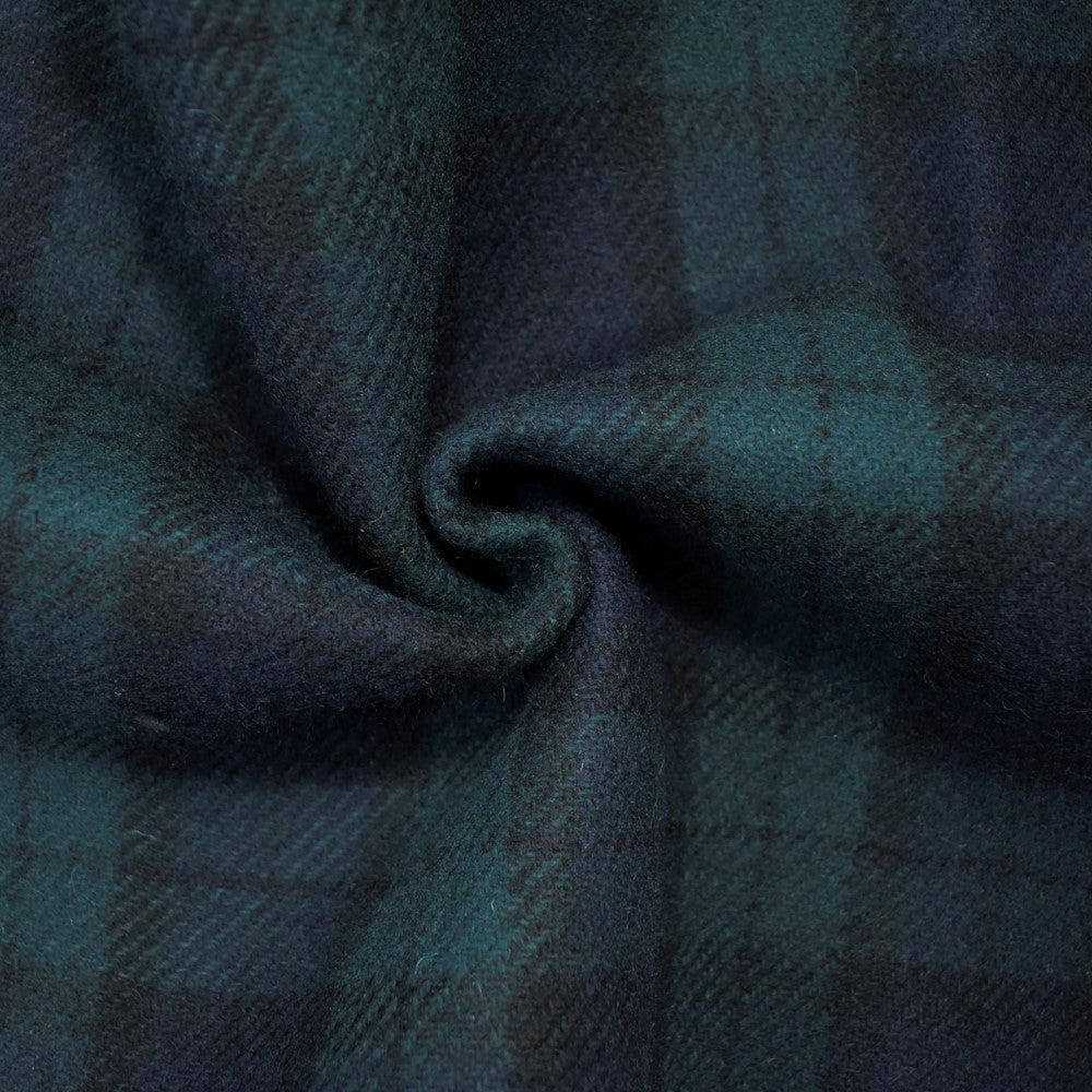 3 YD PC - Green-Blue Wool Rayon Plaid Twill Double Twill Woven Coating Fabric