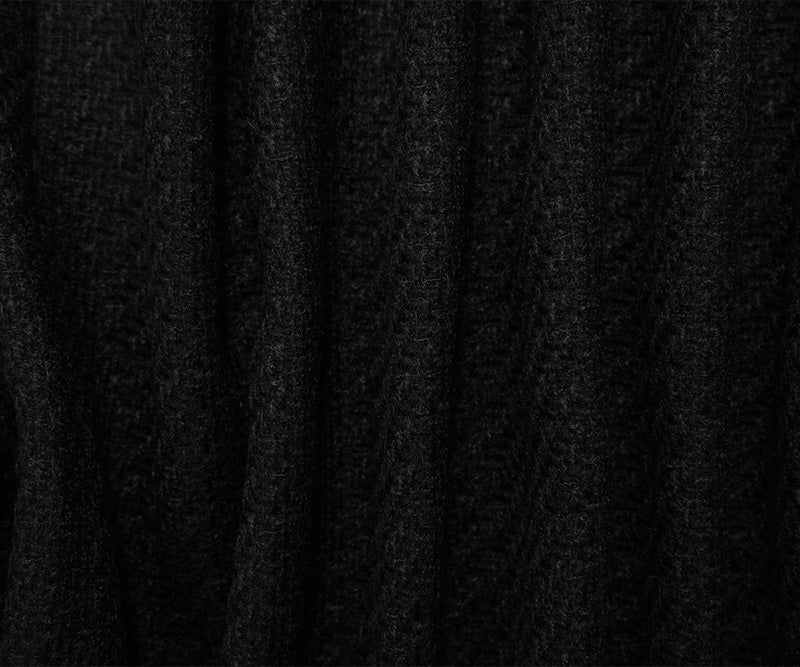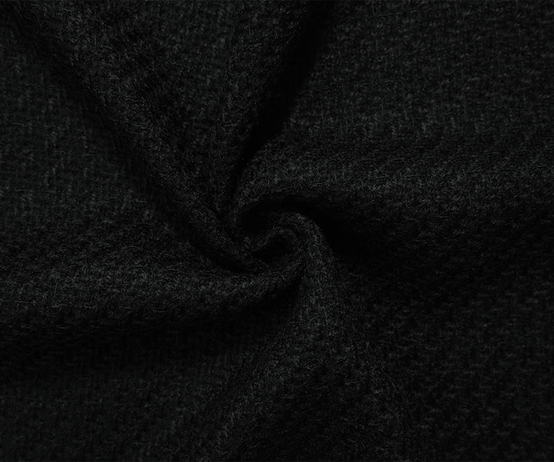 -This black poly-wool fabric features an all-over texture within its durable woven construction.