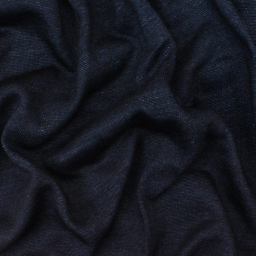 Navy Blue-Black Semi-Sheer Slub Cotton Spandex Stretch Jersey Knit Fabric