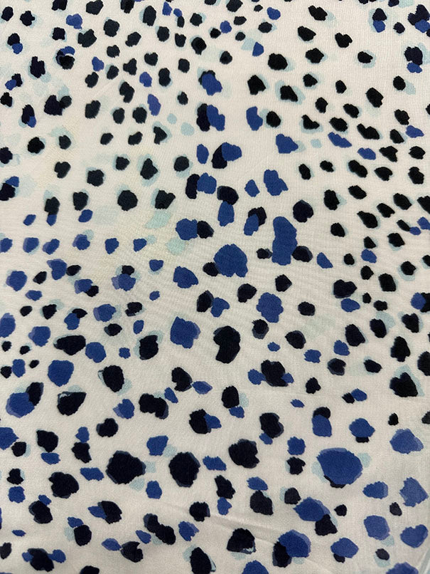 -Blue, Black, & White Cheetah Print Rayon Lawn Fabric