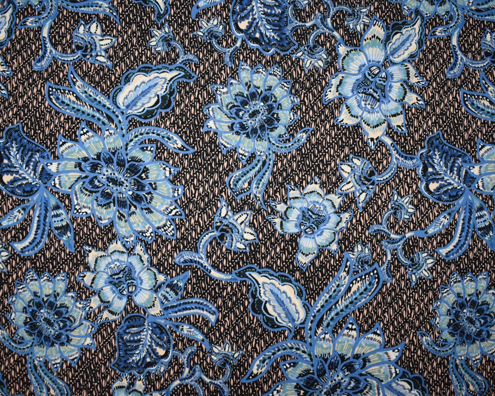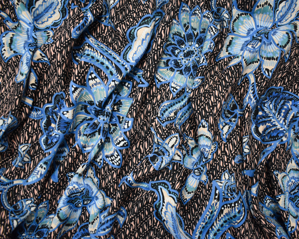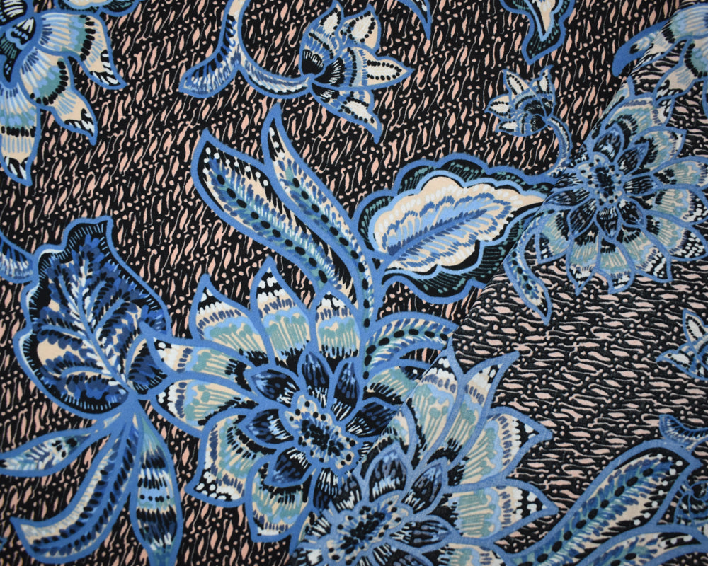-Cotton and rayon blend plain woven lawn fabric printed with a stylized floral pattern