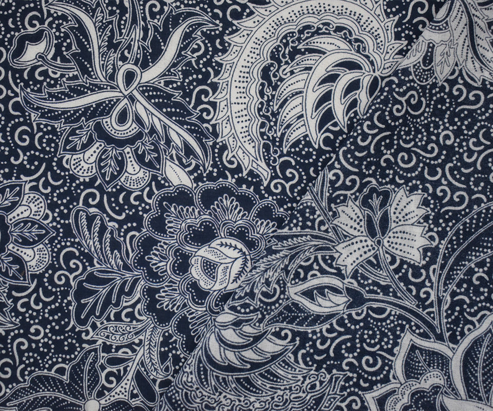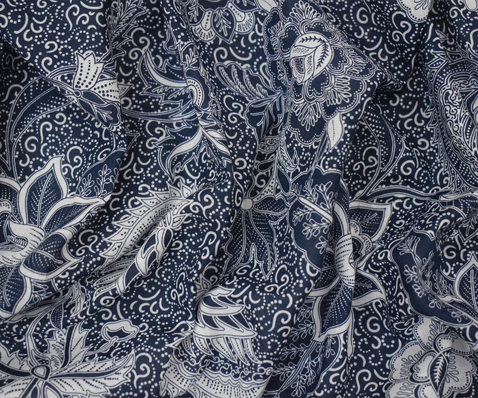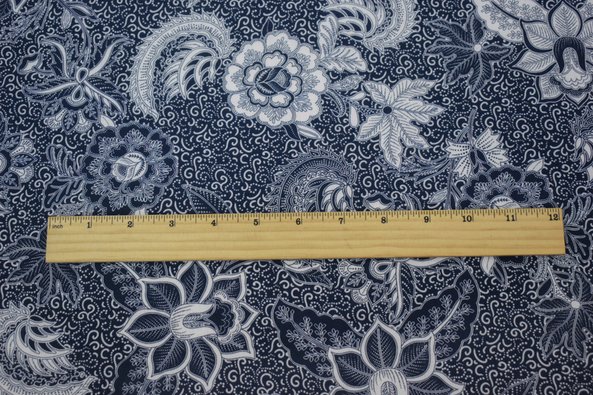 Indigo-White Famous Designer Floral Printed Lawn Woven Fabric