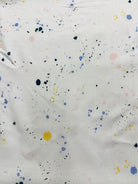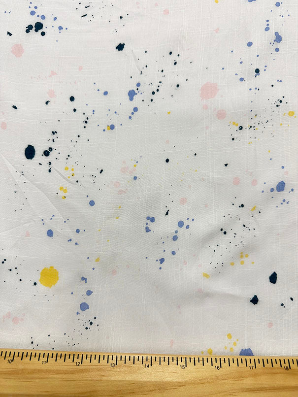 -Yellow, Pink, & Blue Splatter Print on White Rayon Lawn Fabric