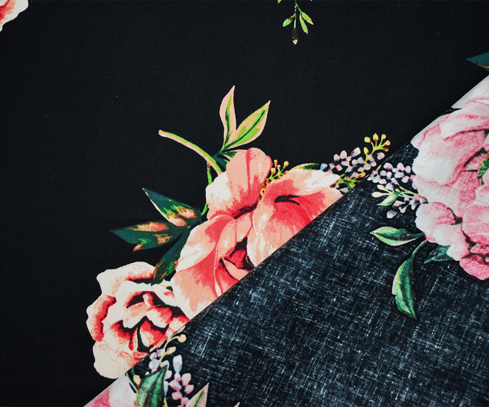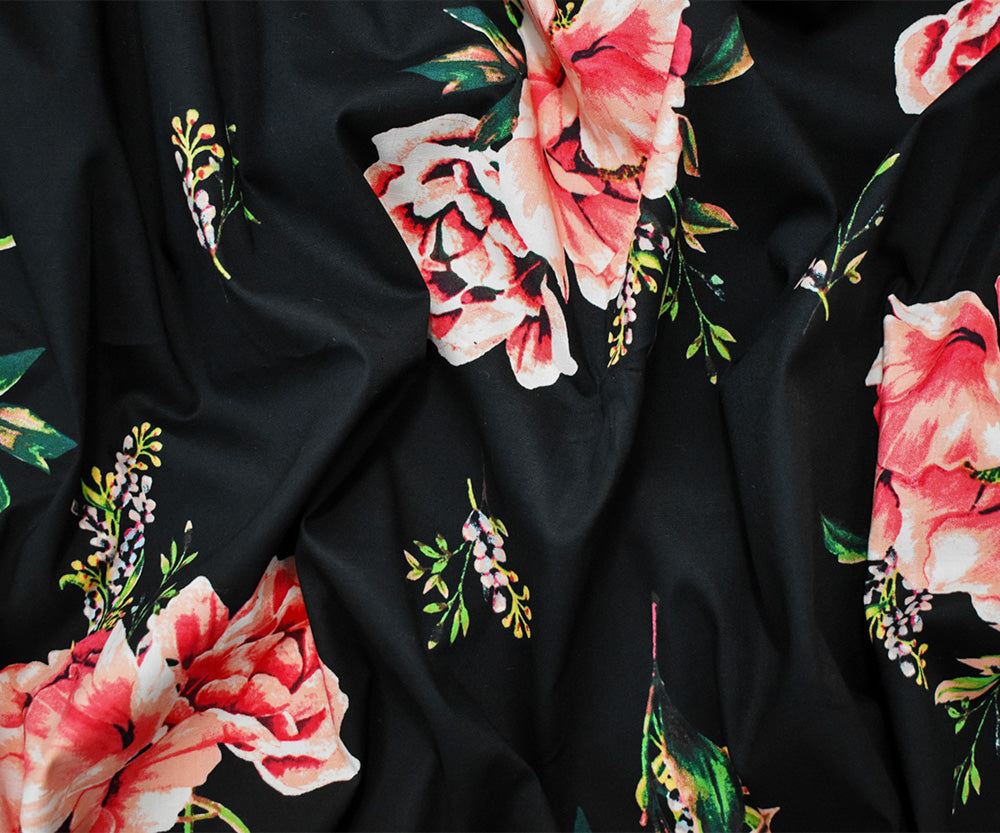 Black-Pink-Multi Cotton Floral Printed Stretch Spandex Poplin Woven Fabric