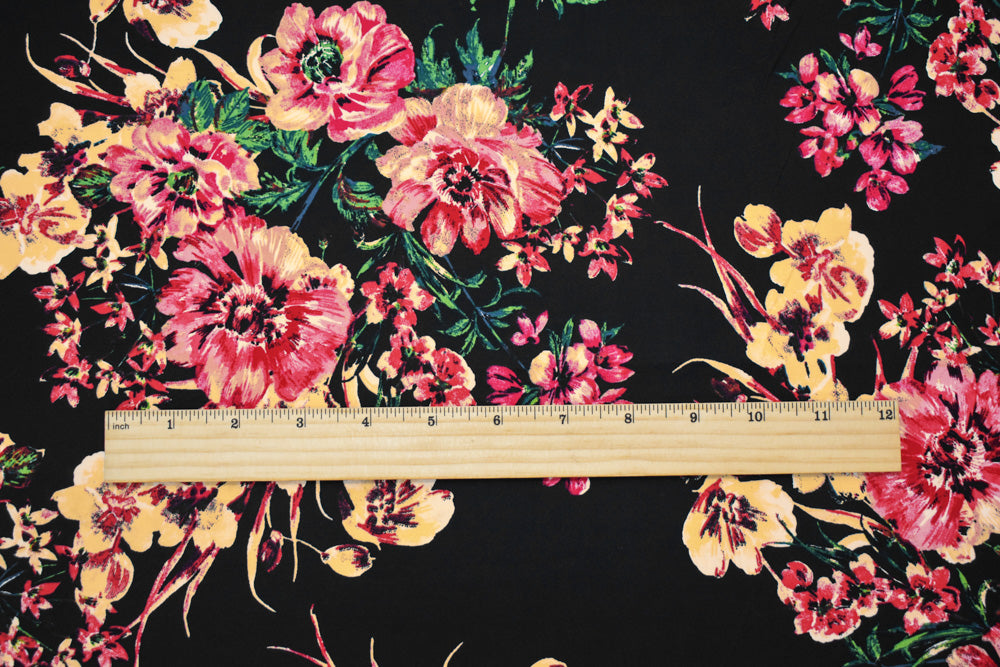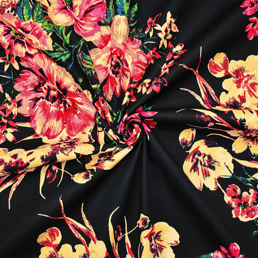 Black-Red-Multi Cotton Floral Print Stretch Spandex Poplin Woven Fabric