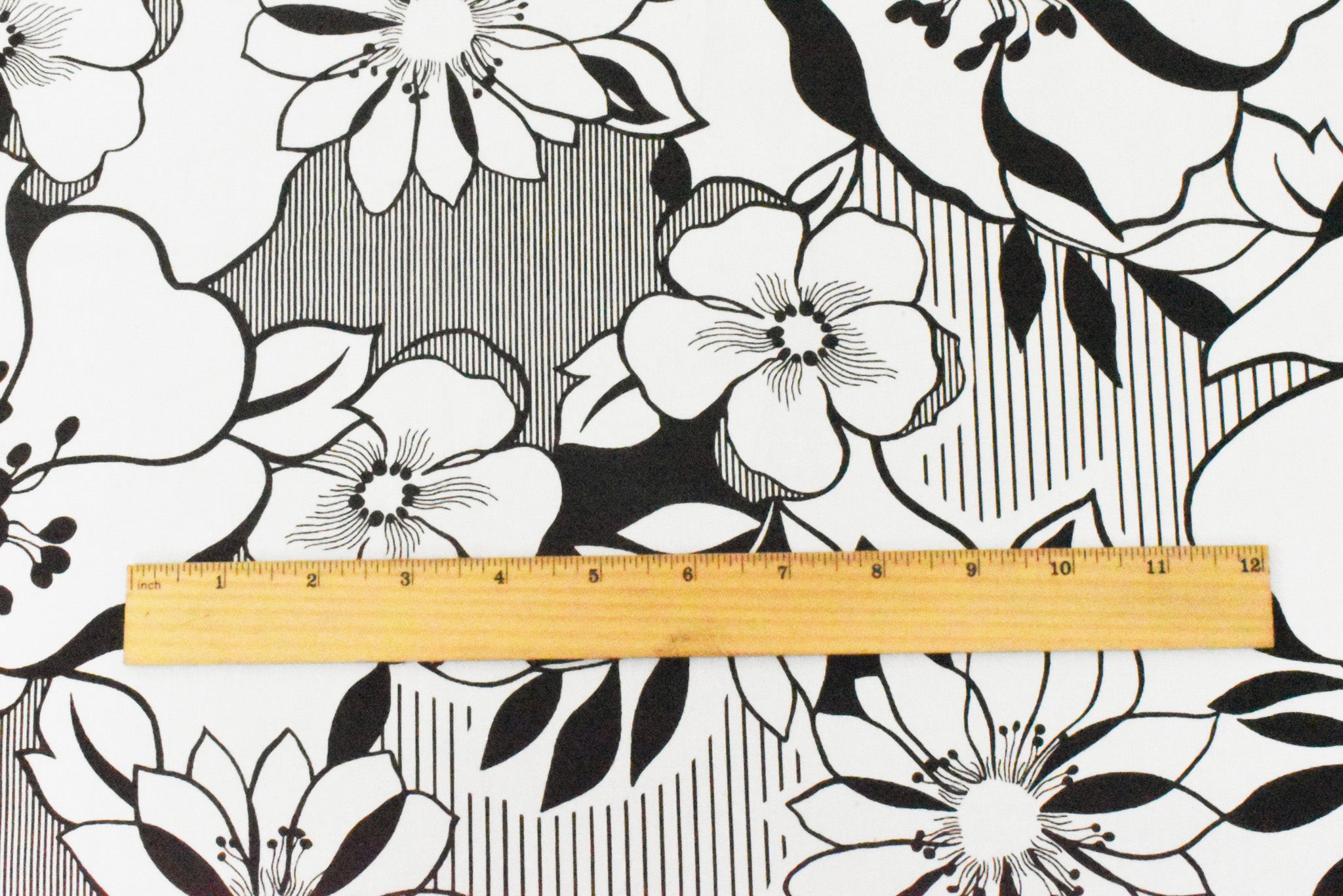 Black-White Floral Printed Stretch Cotton Spandex Poplin Woven Fabric