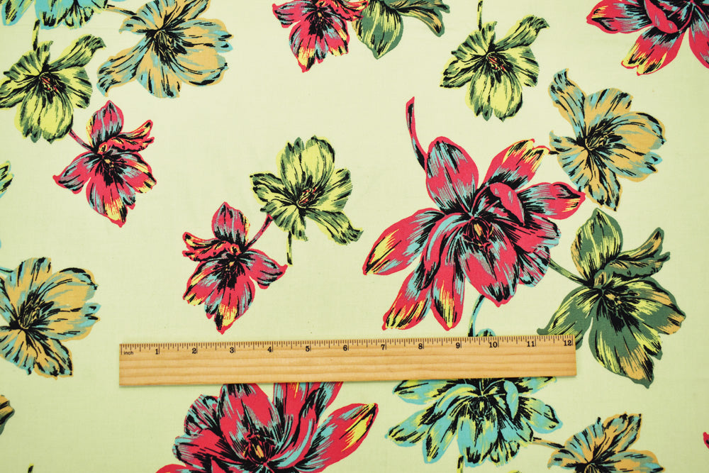Light Yellow-Multi Cotton Floral Print Stretch Spandex Poplin Woven Fabric