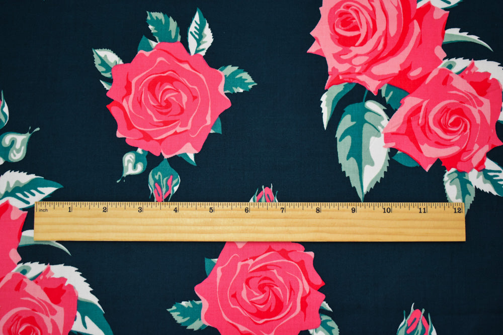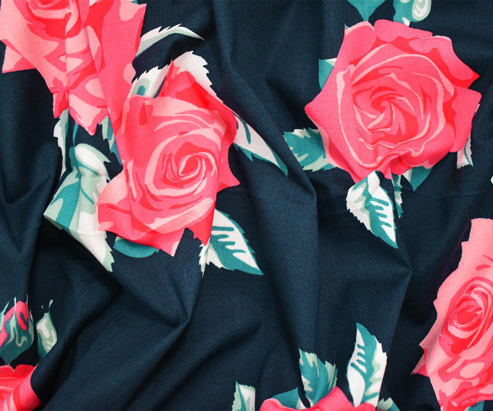 Navy-Pink-Multi Cotton Floral Printed Stretch Spandex Poplin Woven Fabric