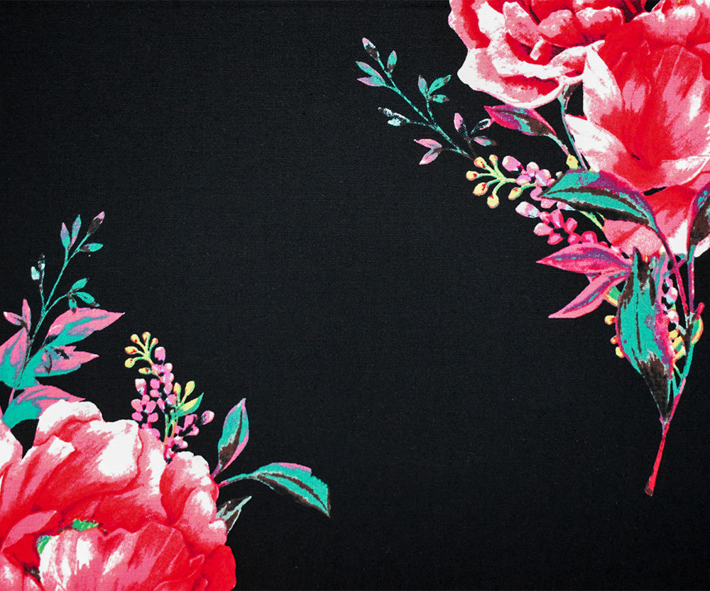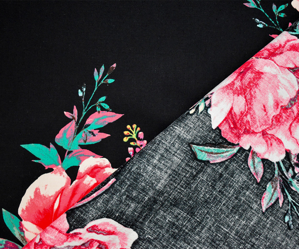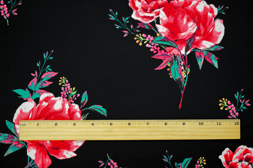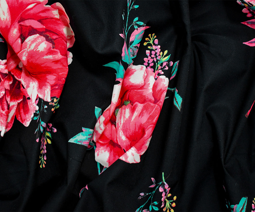 Pink-Black-Multi Cotton Floral Print Stretch Spandex Poplin Woven Fabric