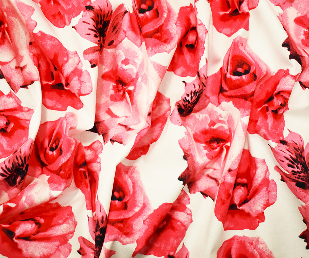 Pink-Off-White Cotton Stretch Spandex Floral Printed Poplin Woven Fabric