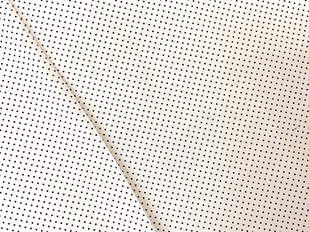 -A smooth poplin woven fabric made from cotton featuring a dot pattern.