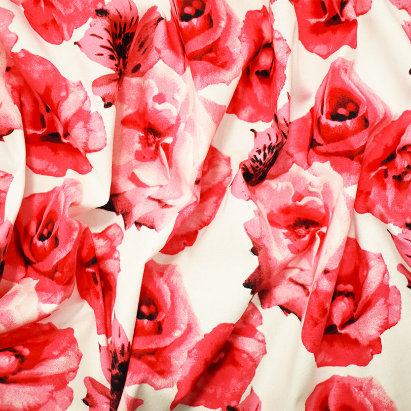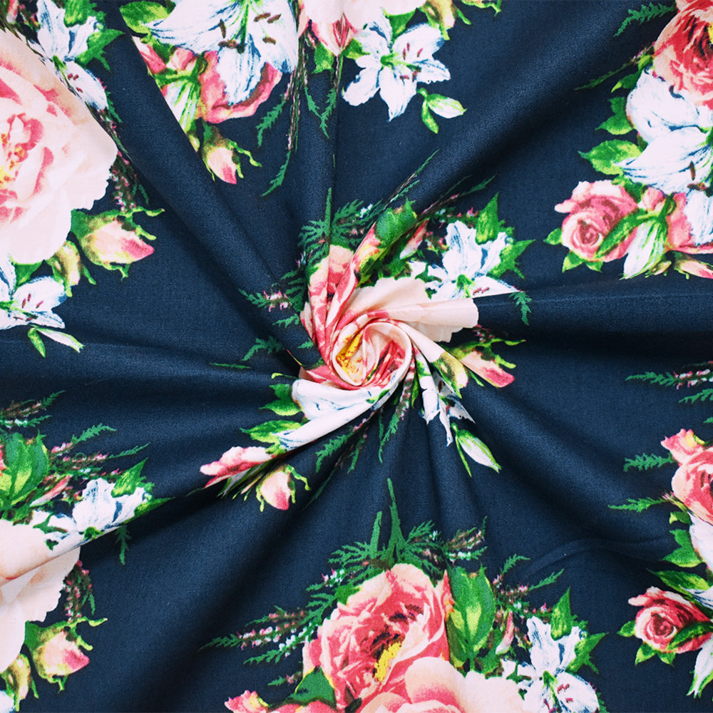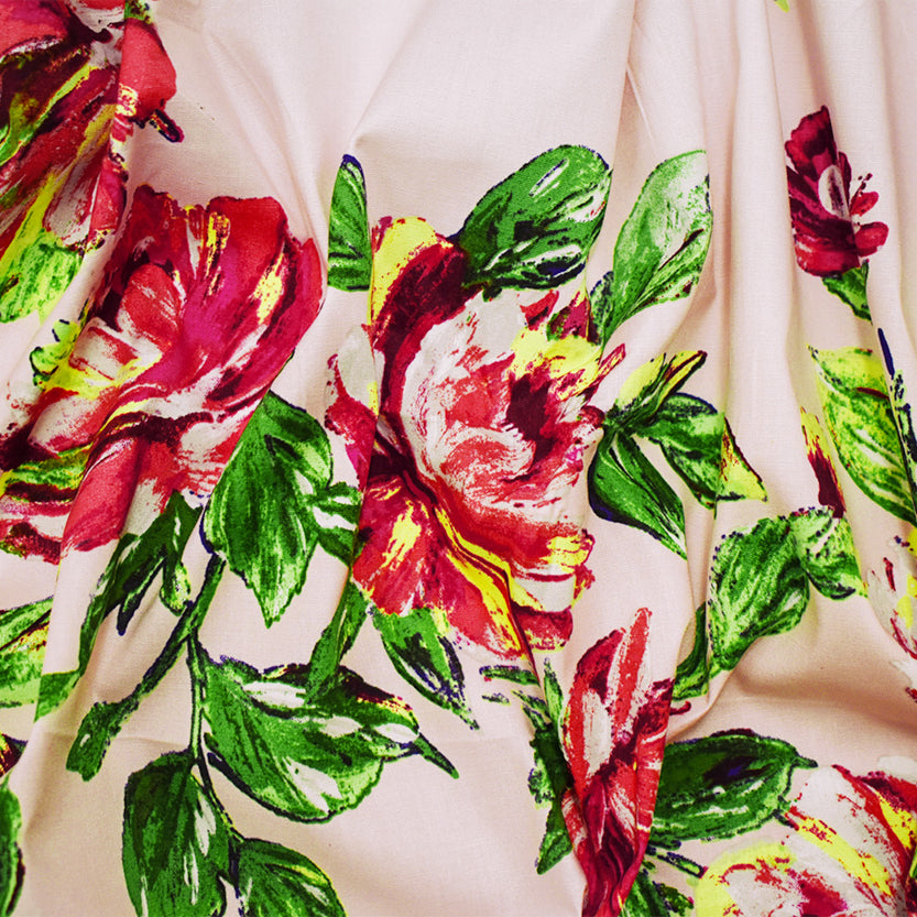 Poplin is a plain weave cotton fabric with very fine horizontal “ribs” that results in a strong, crisp fabric with a silky, lustrous surface usually made from cotton, silk, wool, or blends of these. A durable, lightweight, and breathable fabric, great for clothing like men's and women's shirts and dresses.
