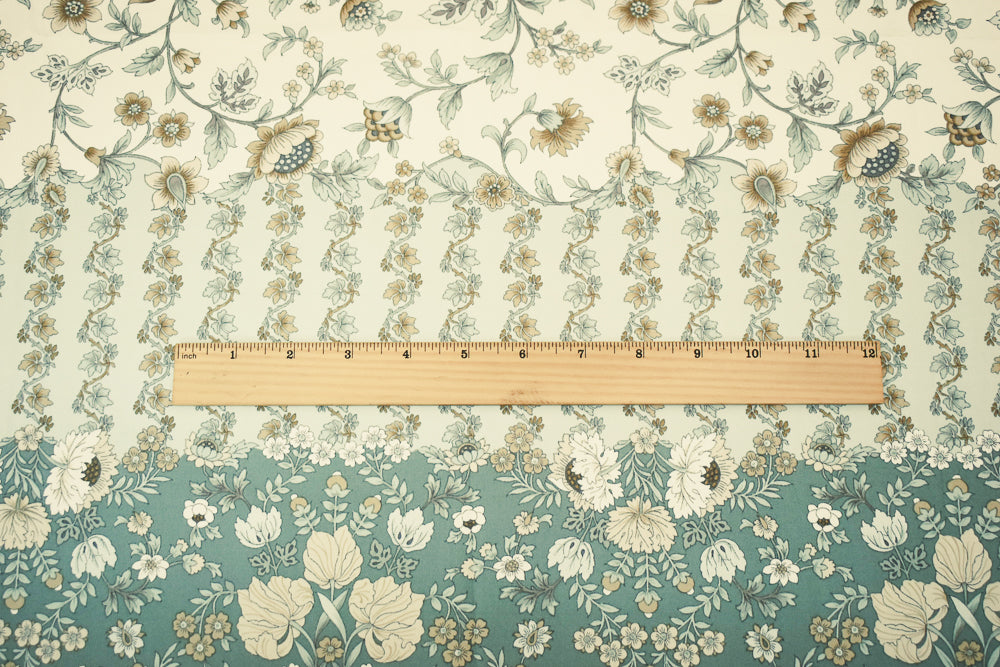 Green-Beige-Multi Floral Border Printed Cotton Sateen Woven Fabric