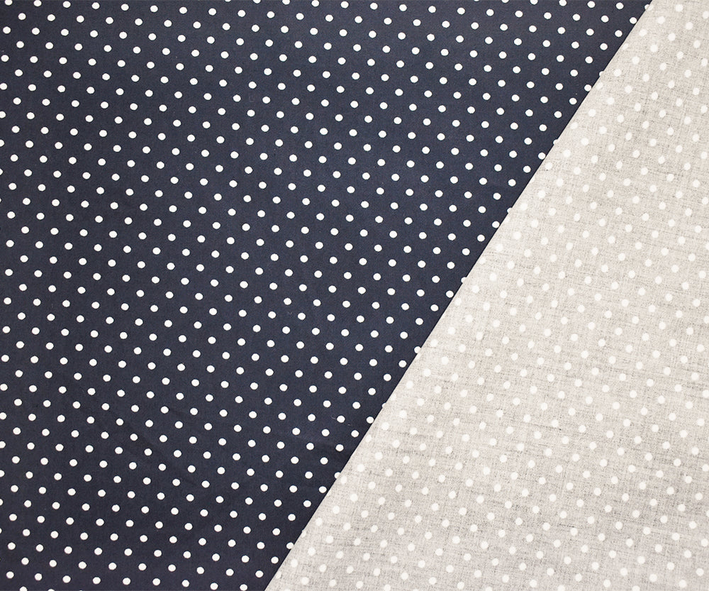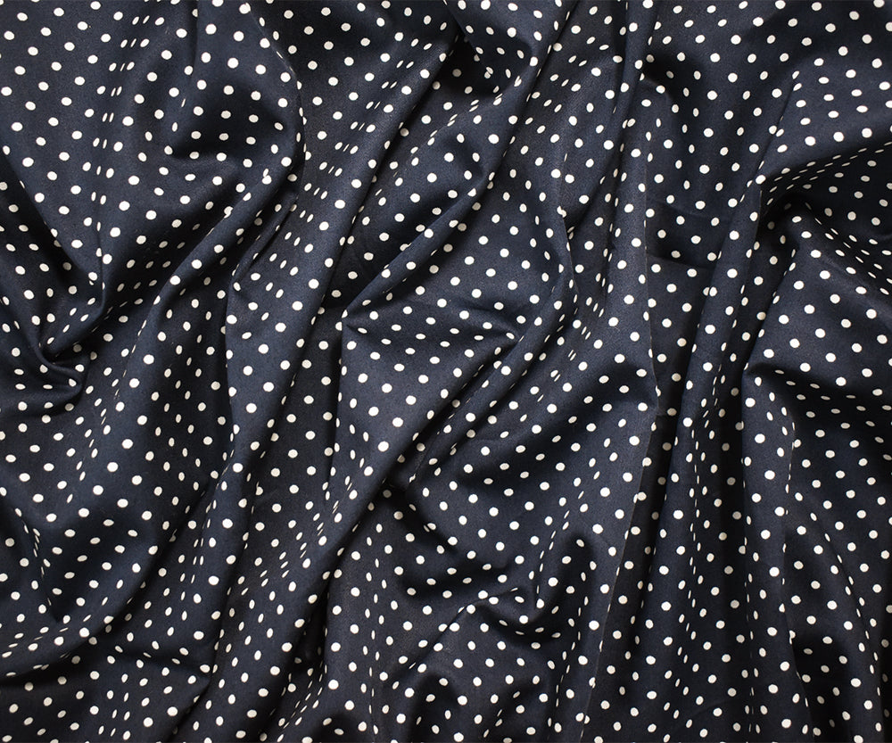Navy-White Cotton Japanese Polka Dot Printed Twill Sateen Woven Fabric