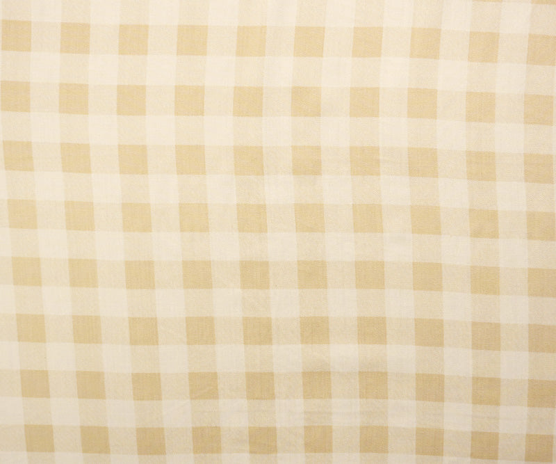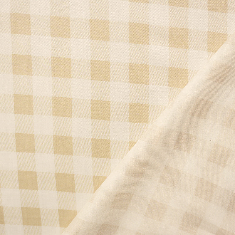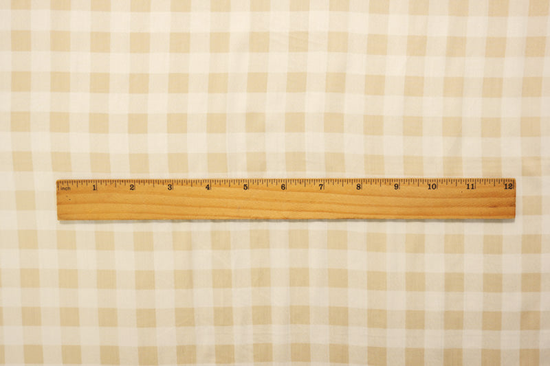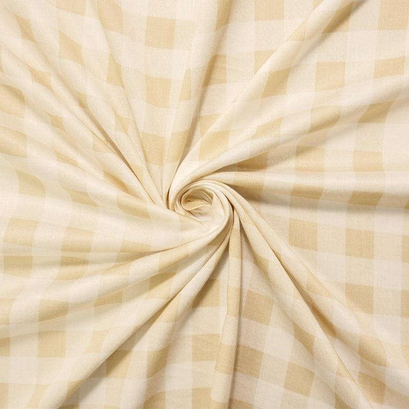 Beige-White Rayon Gingham-Plaid Printed Twill Woven Fabric