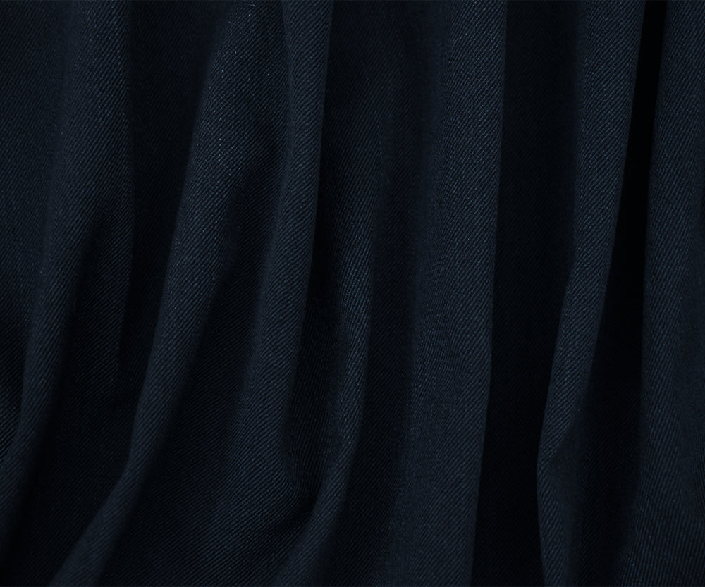 Black-Deepest Blue Wool-Cotton Blend Twill Suiting Woven Fabric