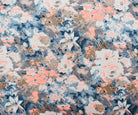 Blue-Coral-Multi Abstract Floral Print Stretch Spandex Twill Sateen Fabric