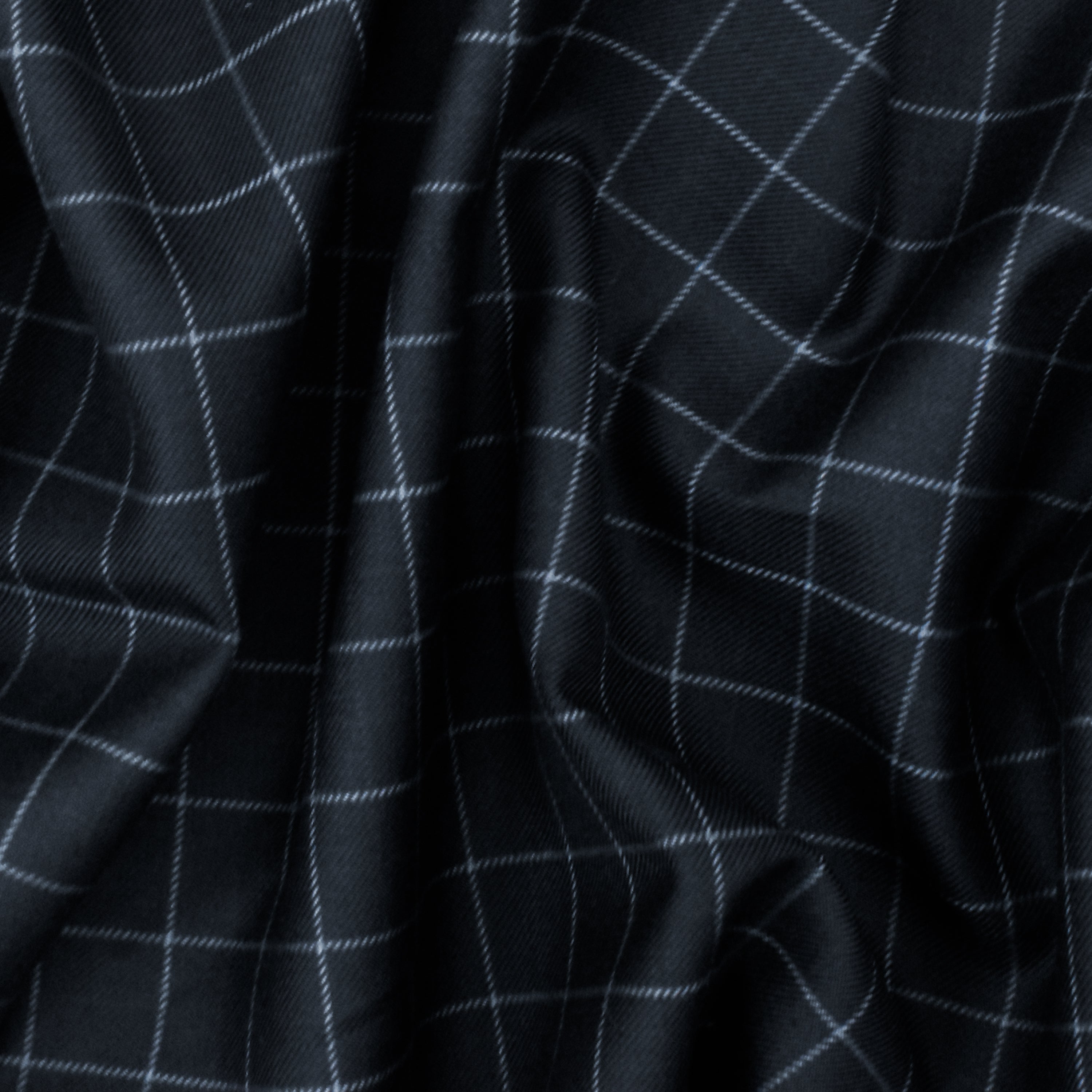 Cold Navy-Gray-Multi Check Wool-Poly Twill Woven Suiting Fabric