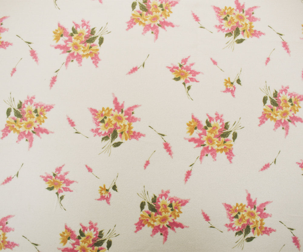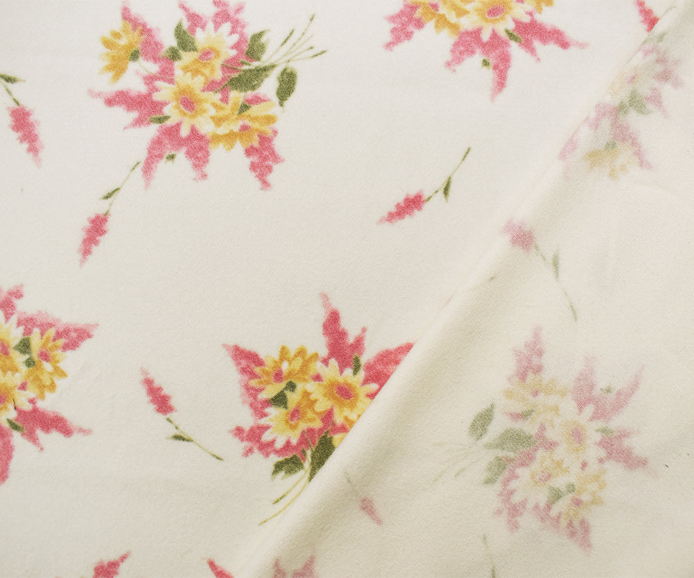 -100% cotton twill flannelette woven fabric printed with florals. Made in Japan.