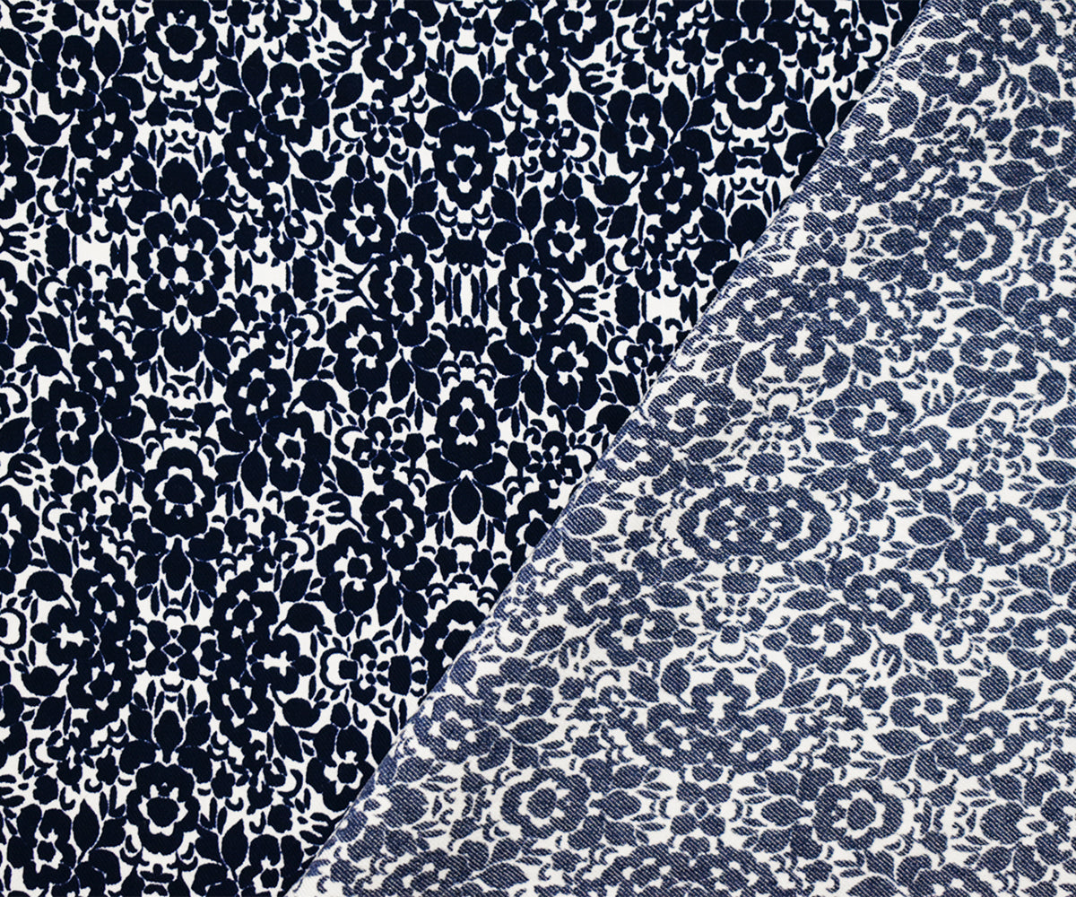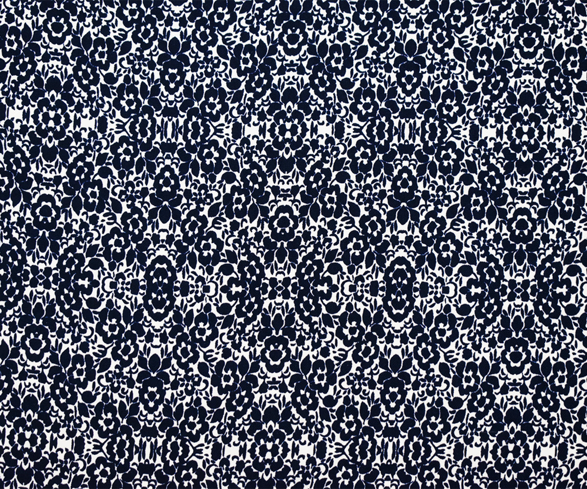 Deep Navy-White Poly Floral Printed Twill Woven Fabric