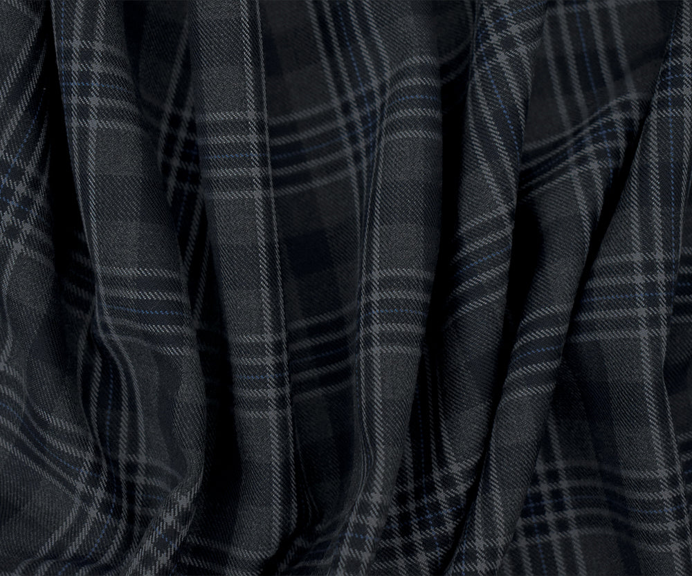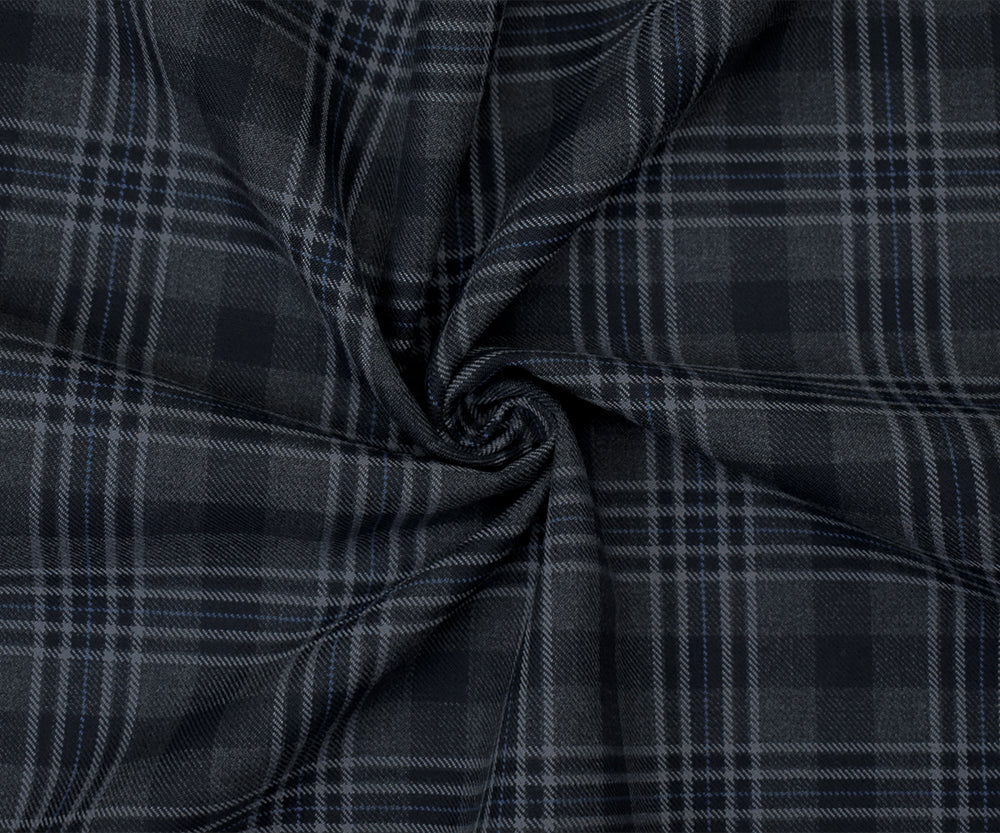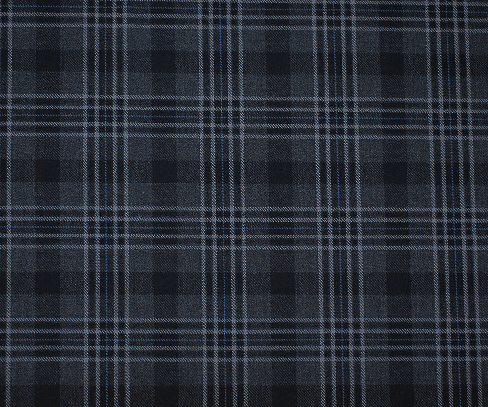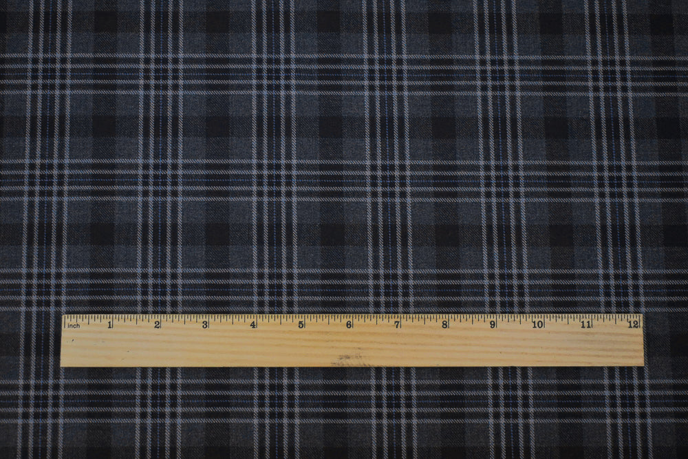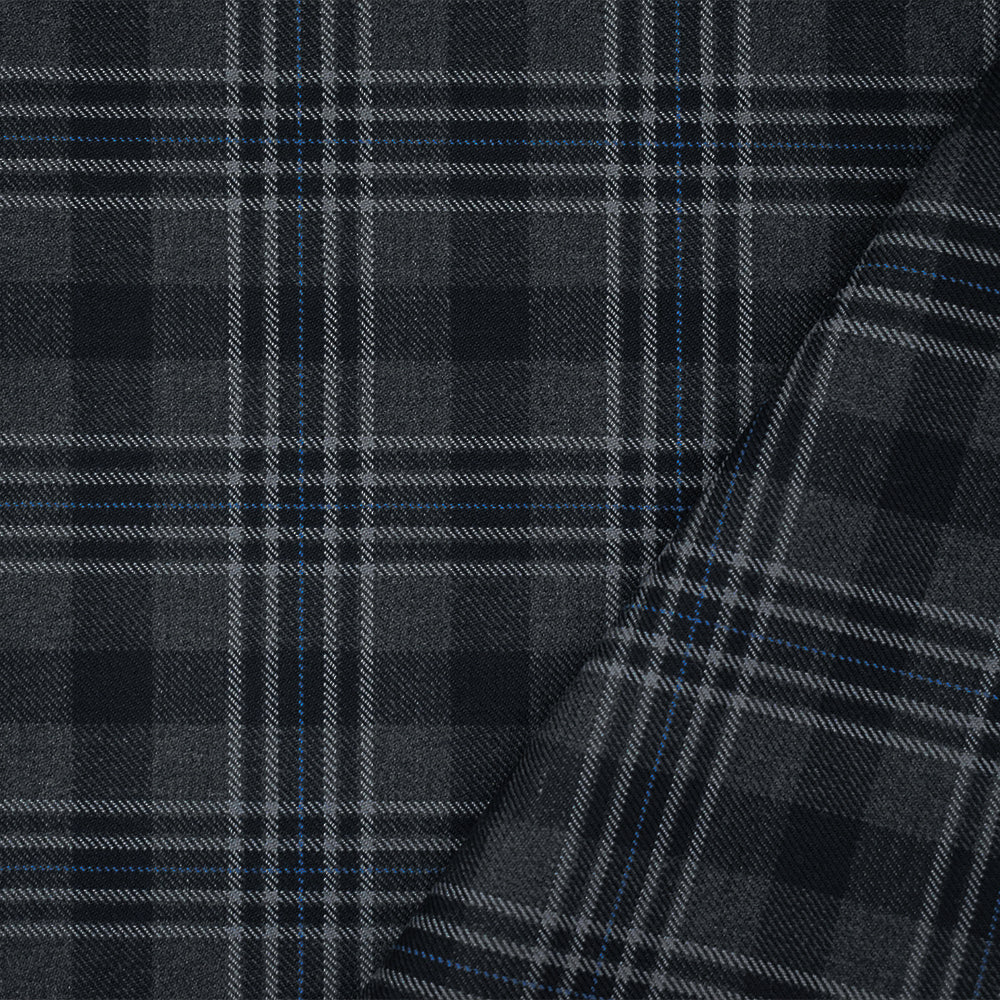 Gray-Blue-Multi Wool Polyester Plaid Check Twill Suiting Woven Fabric