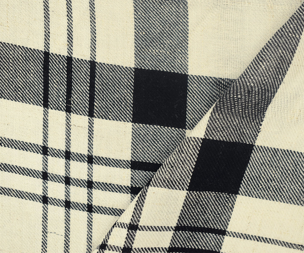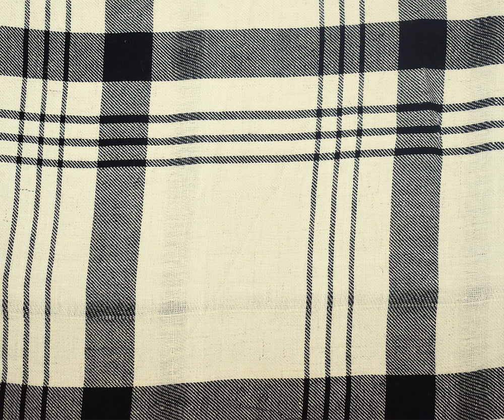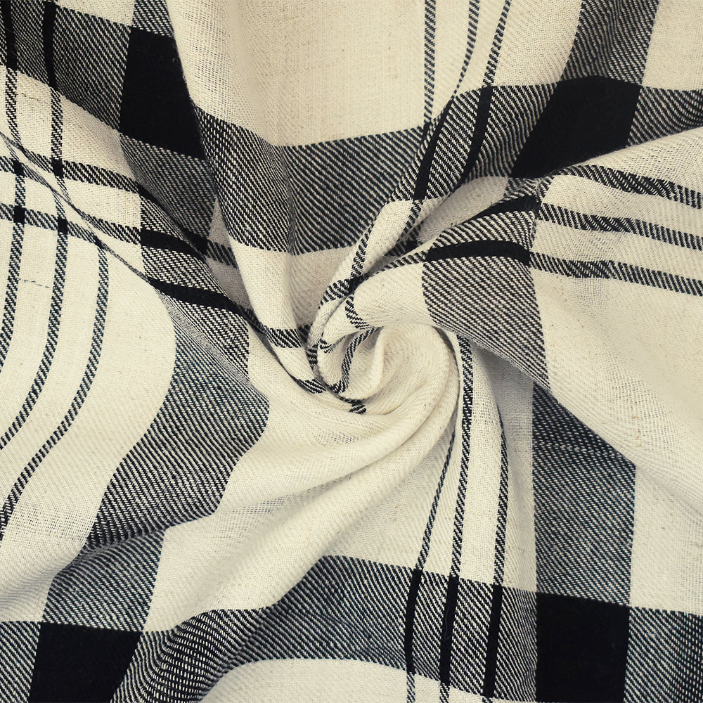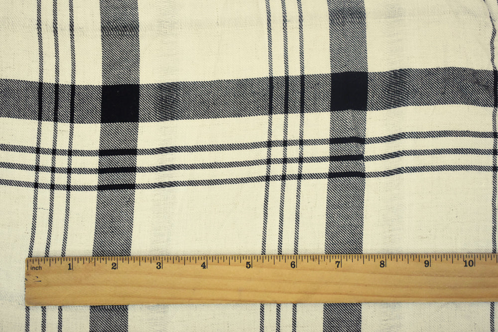 Ivory-Black-White Plaid Printed Rayon Twill Woven Fabric