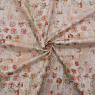 Peach-Multi Floral Texture Printed Stretch Twill Sateen Woven Fabric