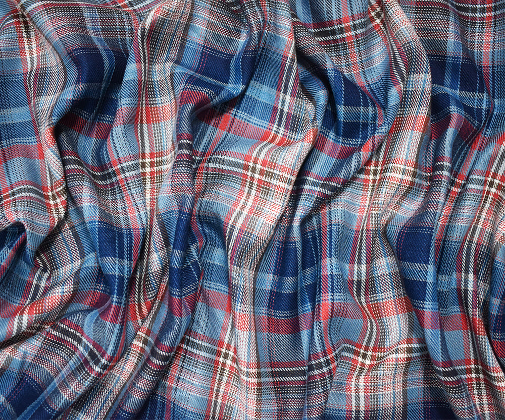 Red-Blue-Multi Cotton Famous Maker Plaid Twill Woven Fabric