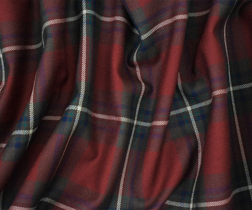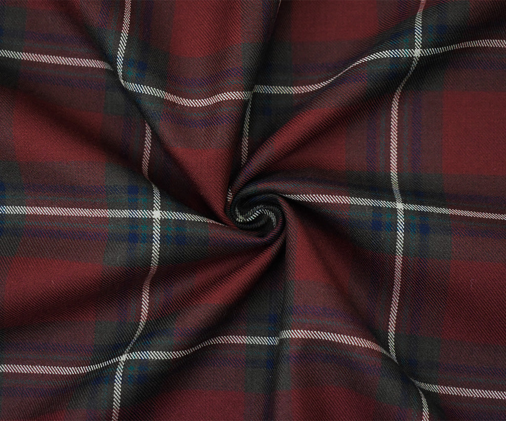 Red-Green-Multi Wool Polyester Plaid Check Twill Woven Suiting Fabric