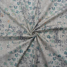 Teal-Multi Cotton Floral Texture Printed Stretch Twill Sateen Woven Fabric