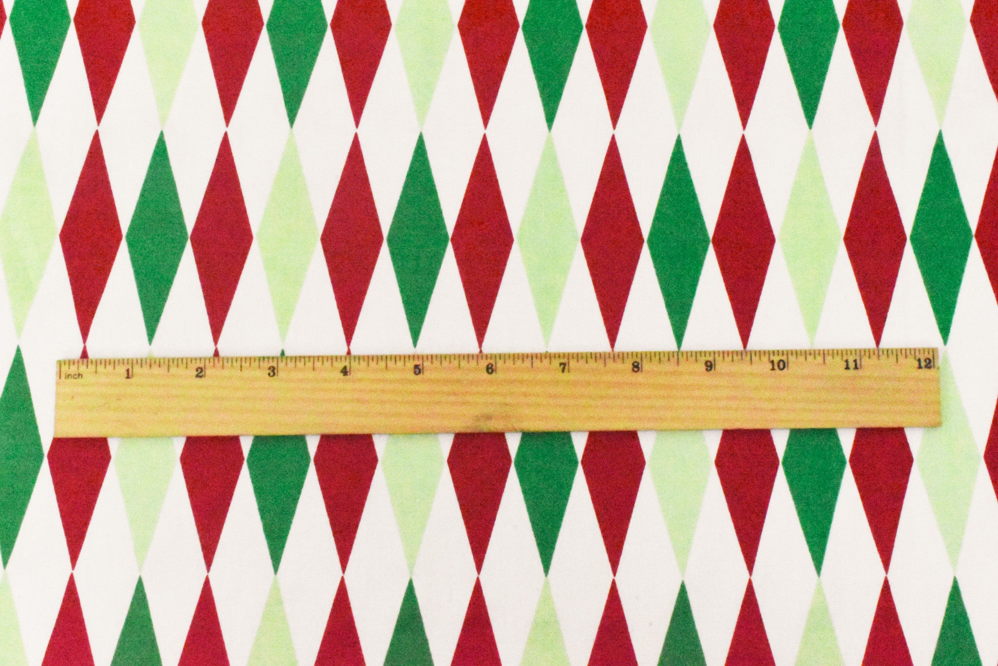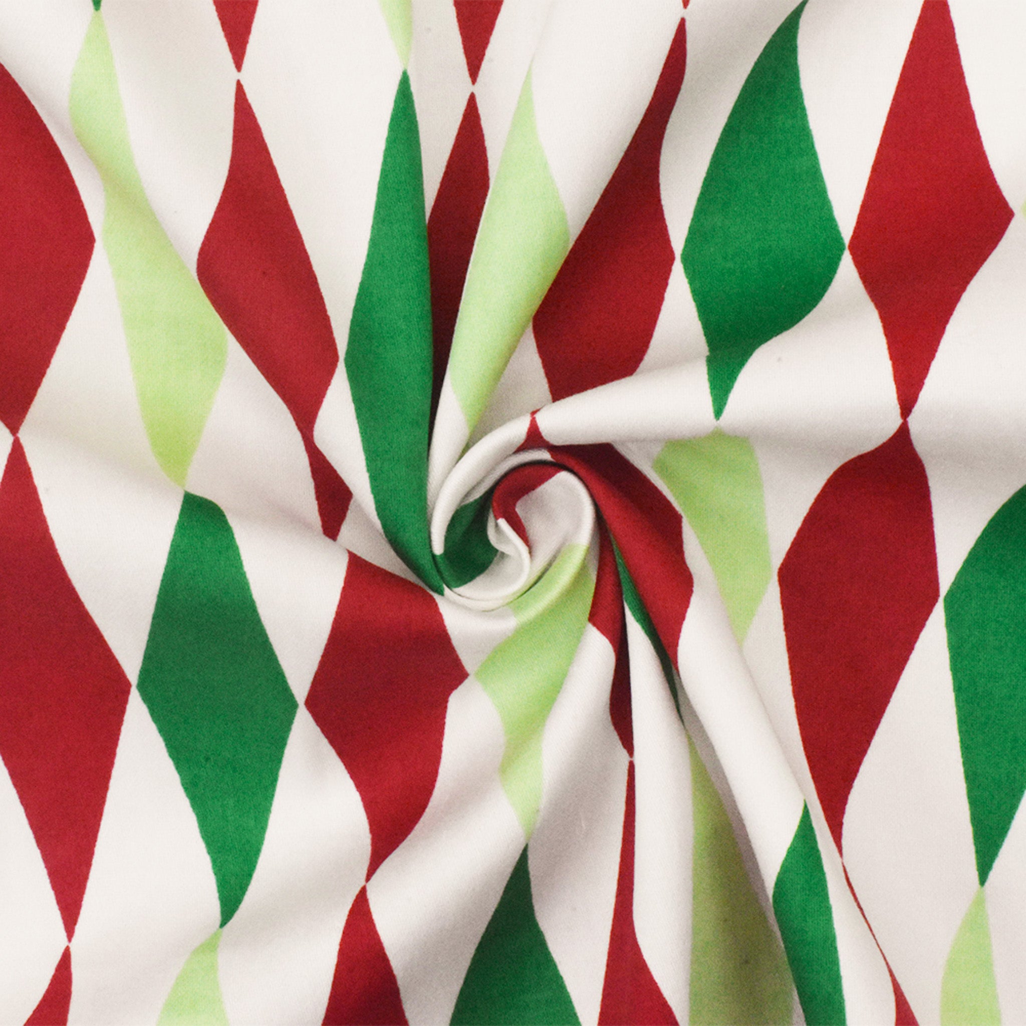 White-Red-Multi Diamond Printed Stretch Cotton Twill Sateen Woven Fabric