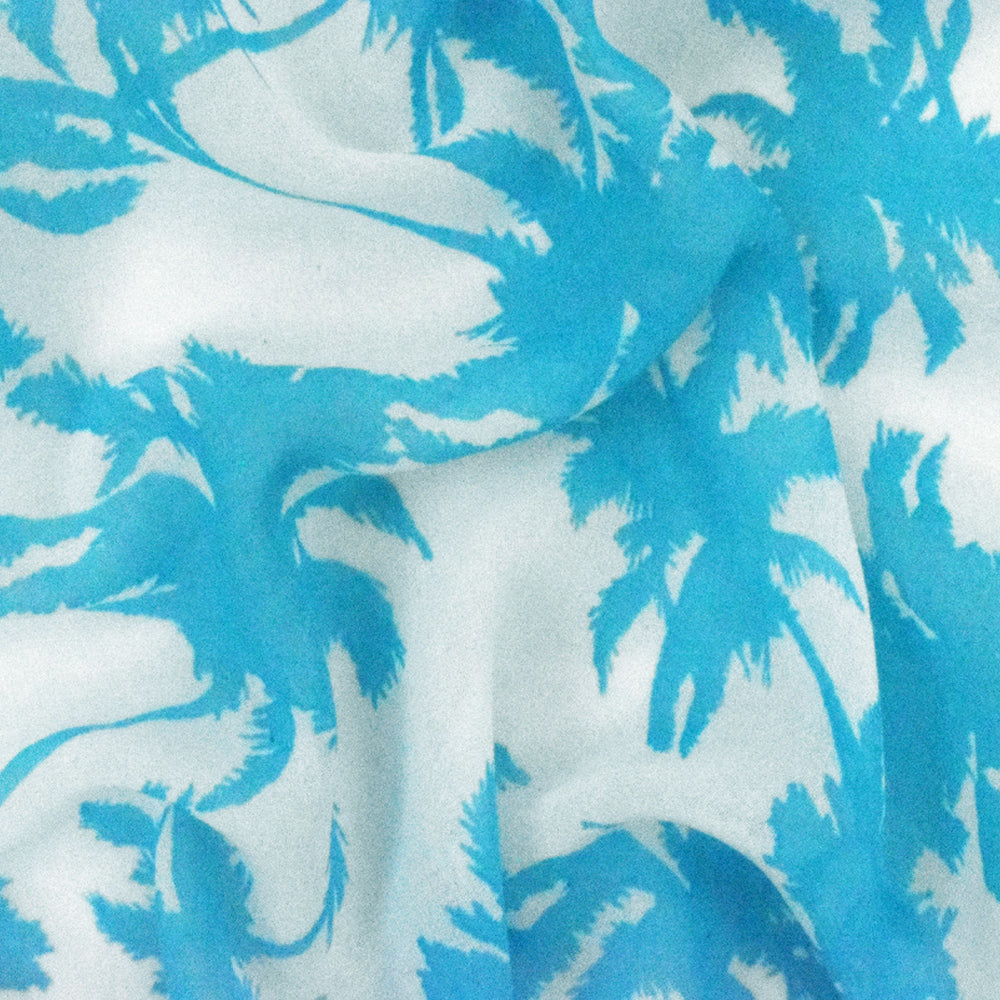 Aquatic Teal-Ivory Palm Tree Printed Crepe Chiffon Fabric