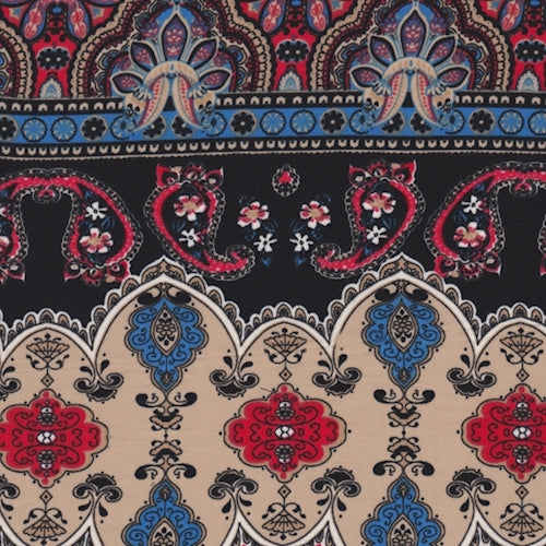Black/Beige/Red Moroccan Stripe Crepe De Chine Fabric