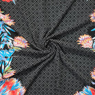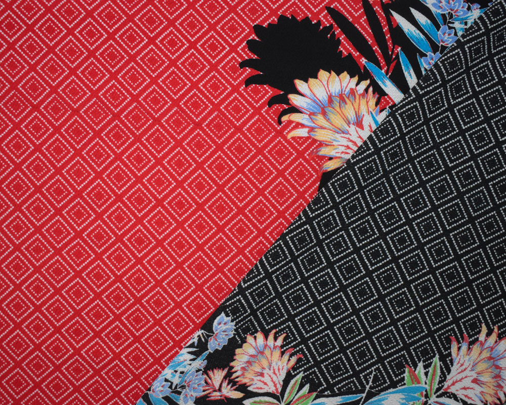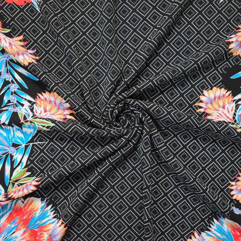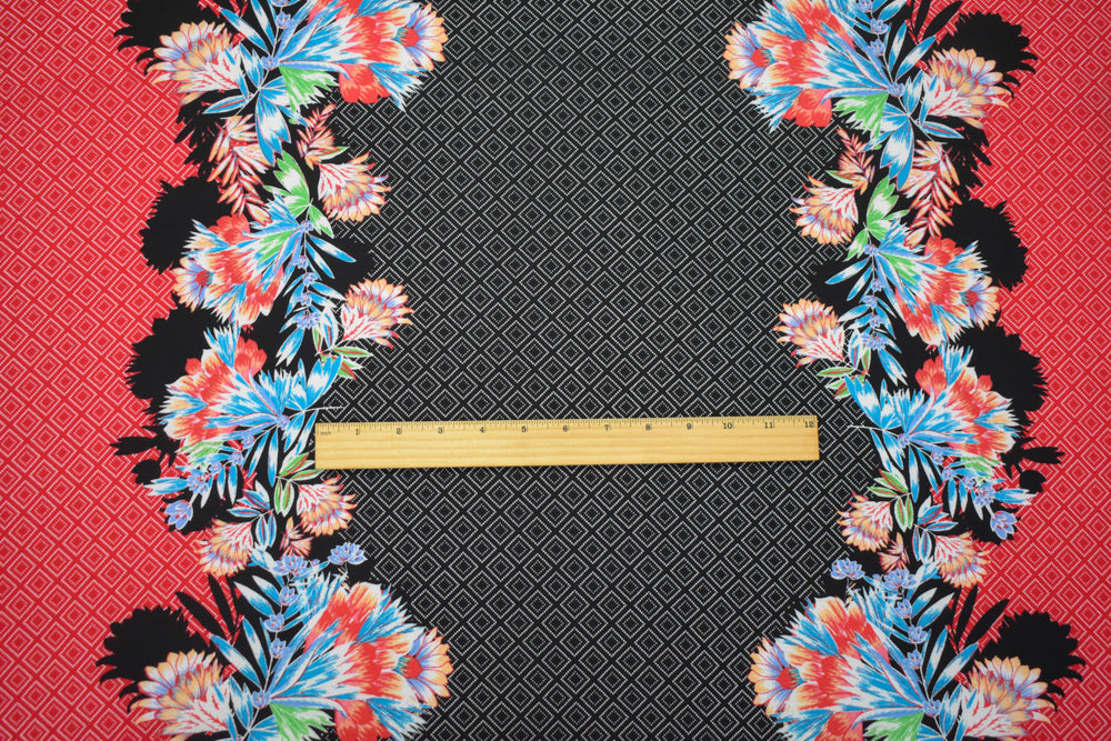 -Black-Red-Multi Poly Floral Diamond Border Printed Pebbel Crepe Woven Fabric