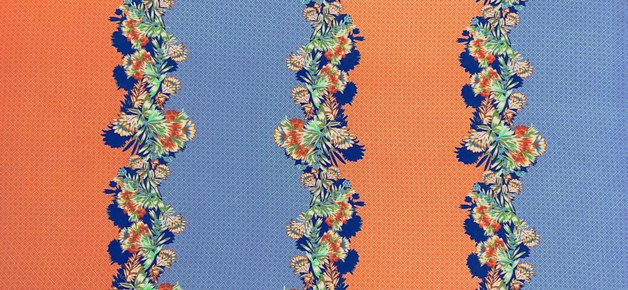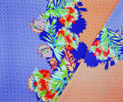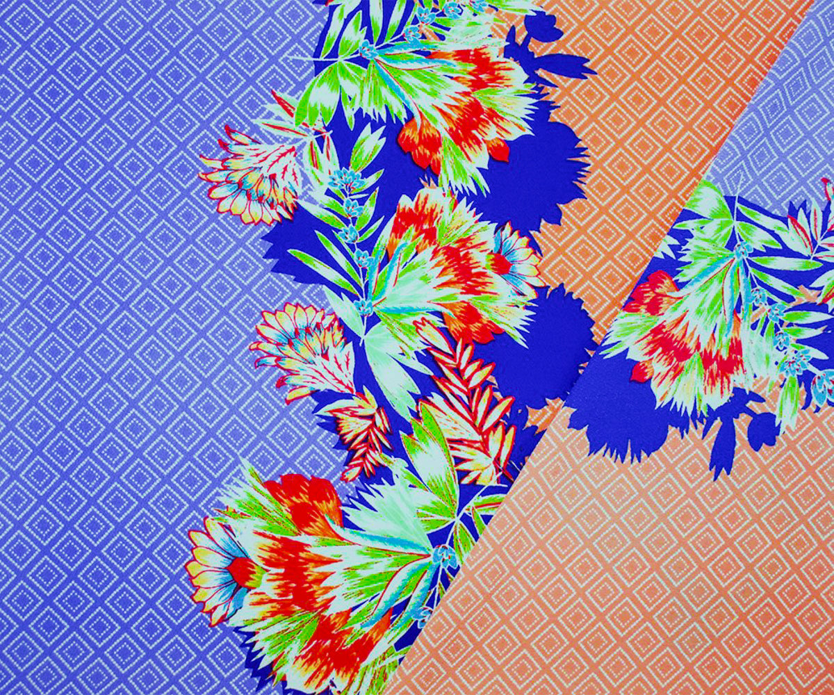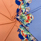 Blue-Coral-Multi Poly Border Floral Diamond Printed Crepe Woven Fabric