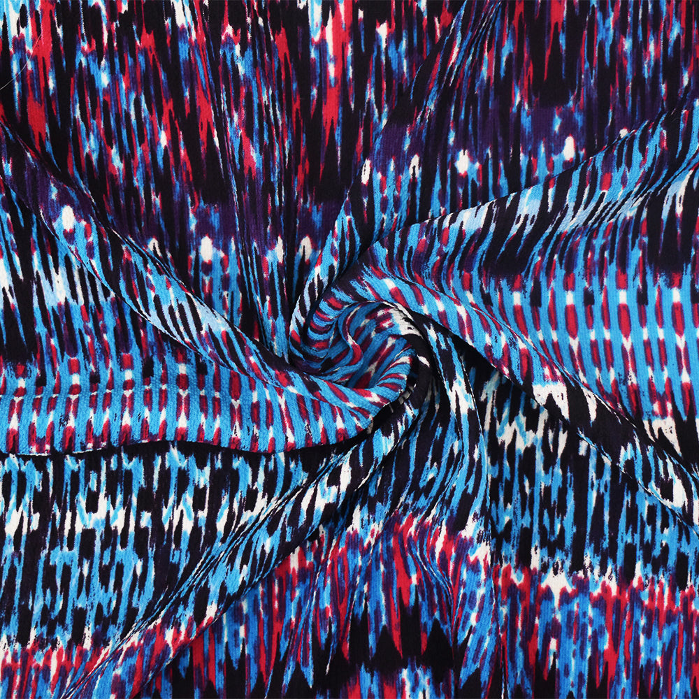 -Abstract tie-dye like pattern printed stretch poly ghost crepe woven fabric