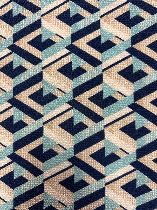 -Light Blue, Navy Blue, Gray, & White Multi Geometric Poly Print High Crepe Fabric