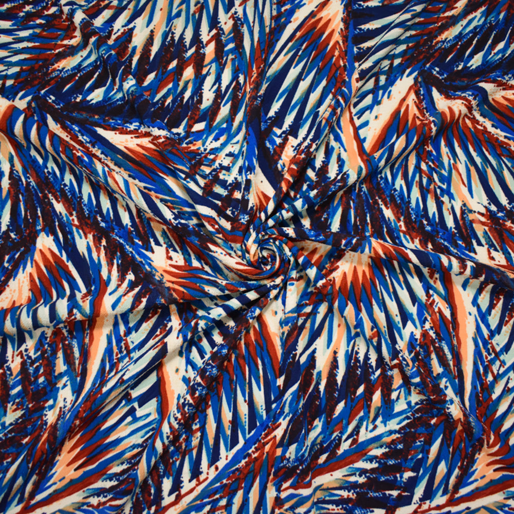 Blue-Red-Multi Poly Abstract Palm Tree Printed Pebble Crepe Woven Fabric