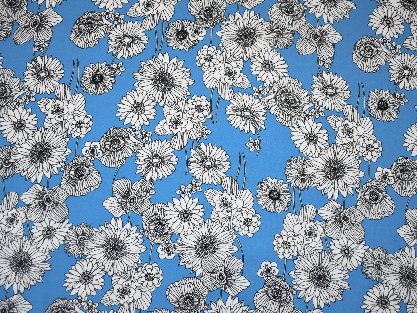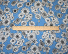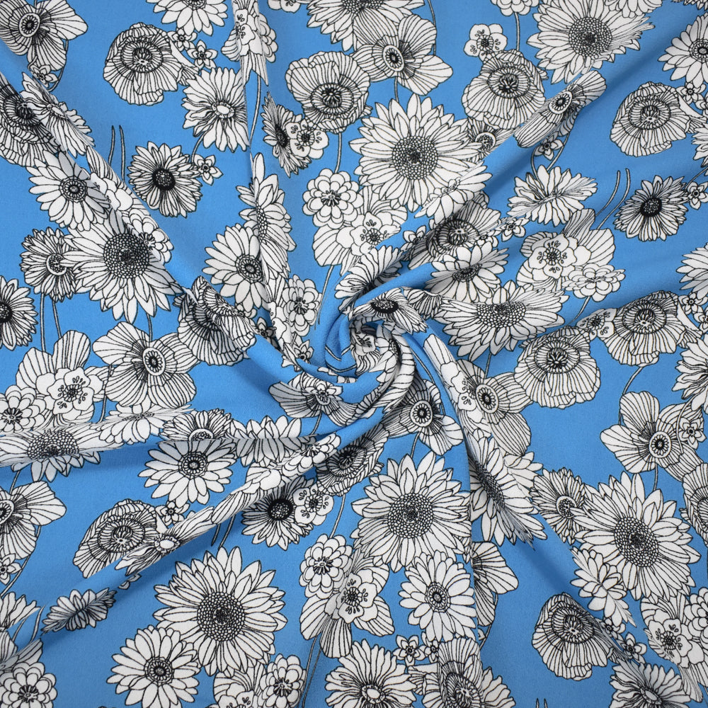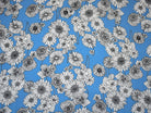 Blue-White-Black Poly Floral Printed Crepe Momie Woven Fabric