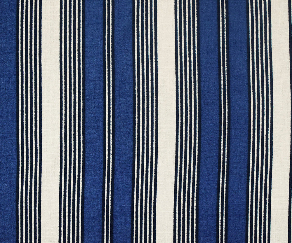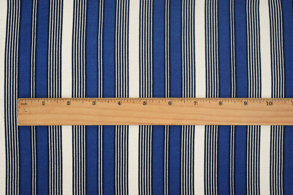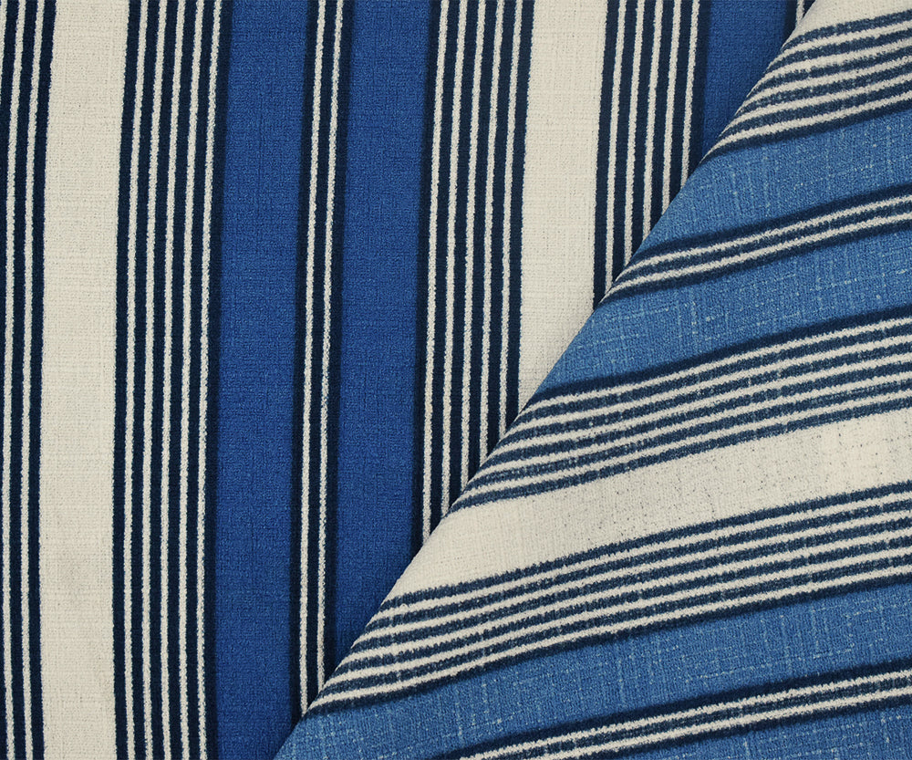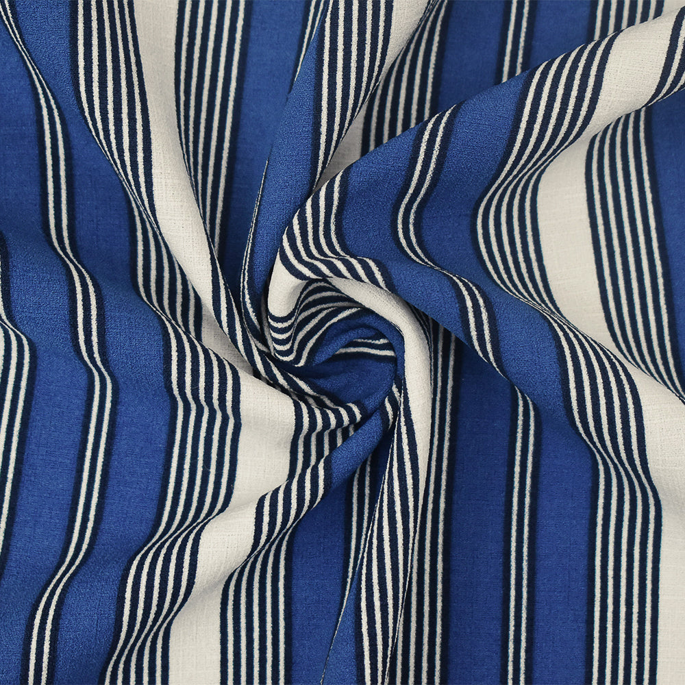 Blue-White Stripe Printed Poly Stretch Crepe Momie Woven Fabric